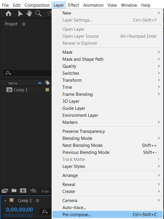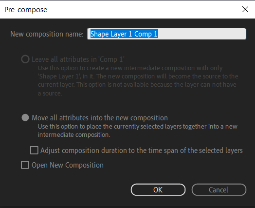 7. Use Pre-Compositions: If you plan to use your line in multiple instances or want to apply effects or animations to it separately, consider pre-composing your line. To create a pre-comp in After Effects, select the layer or layers you want in the pre-comp in the Composition Panel. Then, use the keyboard shortcut Ctrl/Cmd + Shift + C. The Pre-compose box pops up. Give your pre-comp a name, then click OK. This allows you to work on the line independently and easily reuse it throughout your project.