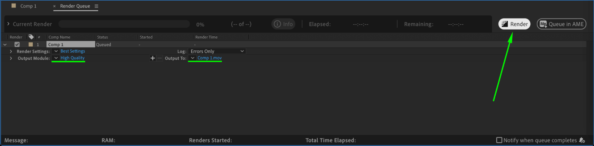 When satisfied with your animation, render your project. Go to Composition > Add to Render Queue, configure your output settings, and click Render. Choose a file format and resolution suitable for your project’s purpose.
