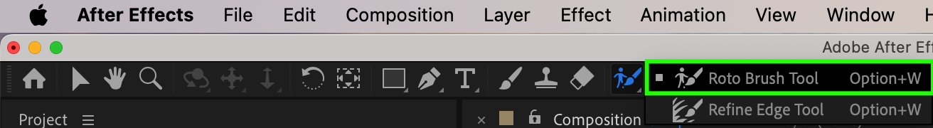 If there are still areas that need refinement, you can use the Roto Brush Tool (shortcut: Alt/Option + W) to manually remove any remaining green background. This tool is especially useful for detailed work, allowing you to precisely mask out unwanted areas and ensure a clean key.