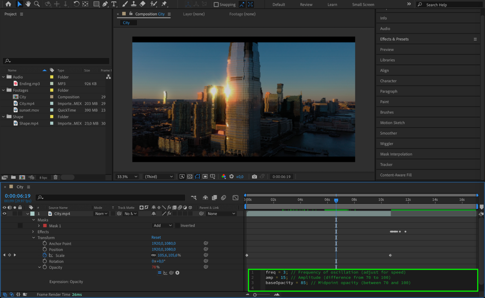 Masks are powerful tools for isolating parts of your footage and applying effects selectively. To create a mask, use the Shape Tool (Q) and draw directly on your layer. You can then adjust the mask’s properties, such as feathering, opacity, and expansion.