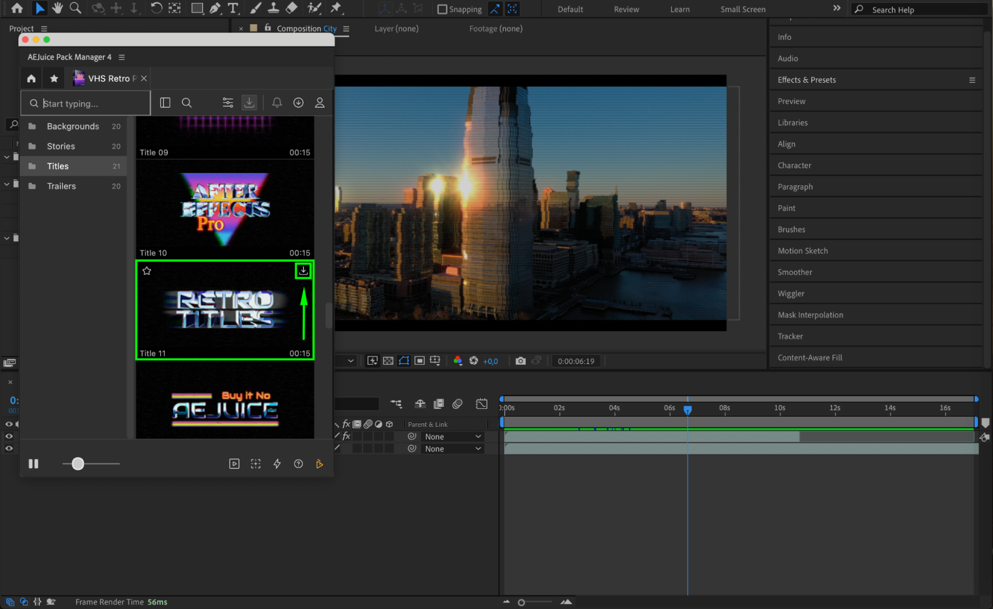 Plugins can significantly expand After Effects’ capabilities. There are numerous third-party plugins available, like AEJuice Pack Manager 4, which offers a wide range of ready-to-use effects, transitions, and animations. These tools can help you achieve complex visuals without having to create them from scratch.