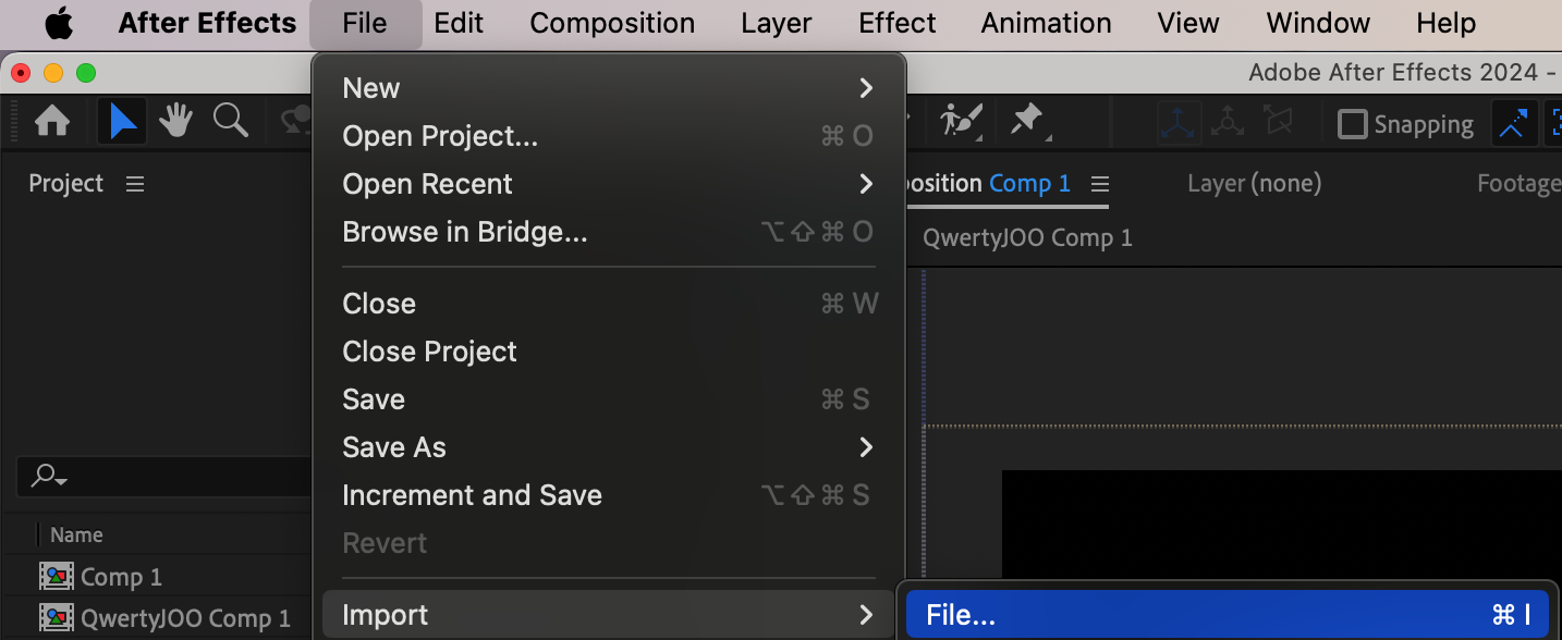 If you want to add your own resources, go to File > Import > File. Once your resources appear in the Project Panel, drag them onto the Timeline Panel. You can place them in the main composition or within specific layers, integrating them seamlessly with the existing elements.