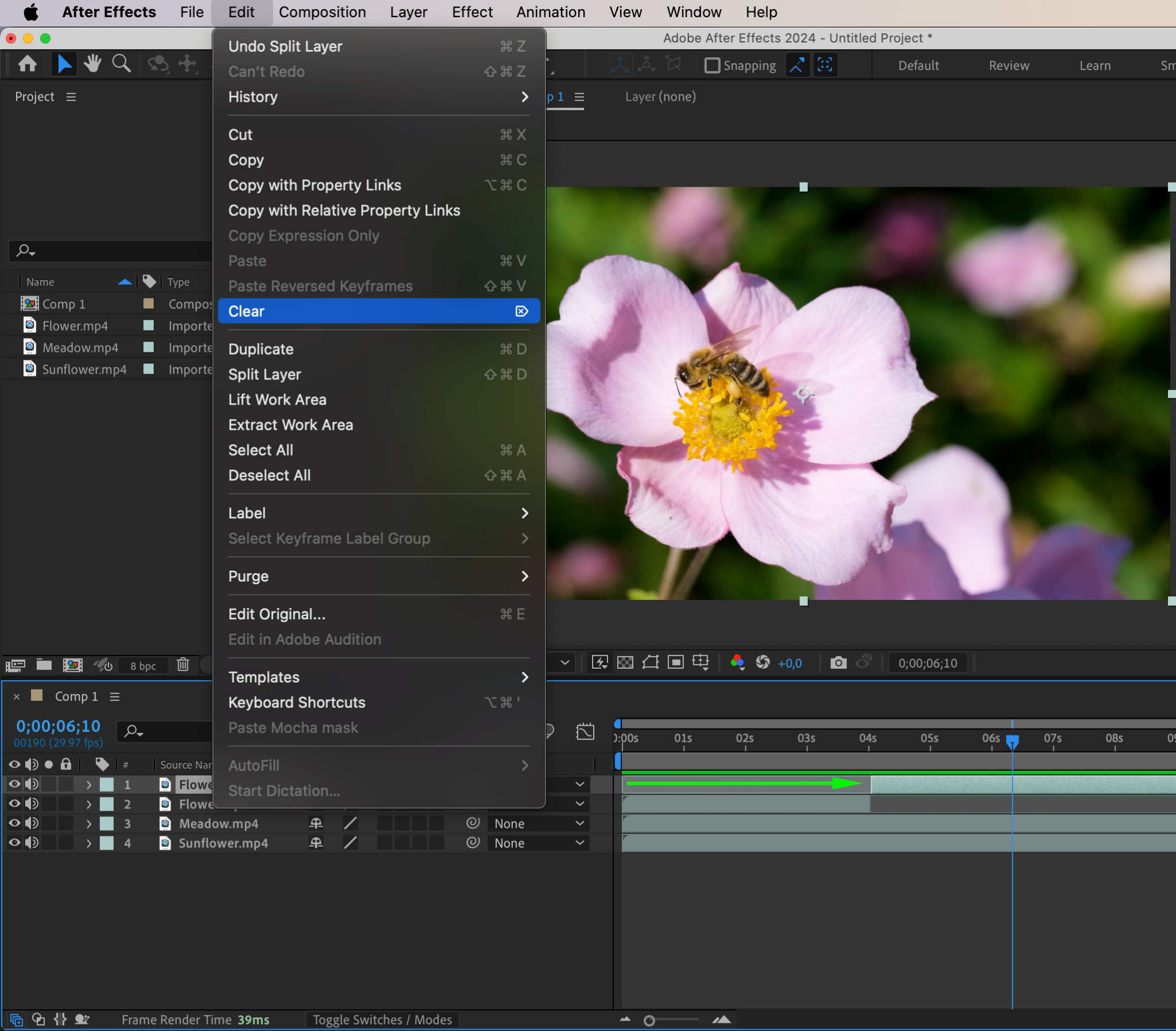 With your clips in place on the timeline, you can begin editing. After Effects offers a variety of tools to help you trim, cut, and rearrange your clips. To split a clip at a specific point, place the Current Time Indicator (CTI) at the desired location and press “Ctrl/Cmd + Shift + D”. This will divide your clip into two separate layers. You can move and adjust the timing of your clips using the Selection Tool, and delete any unnecessary portions with the “Delete” key. These basic techniques will help you create a seamless and dynamic video sequence.