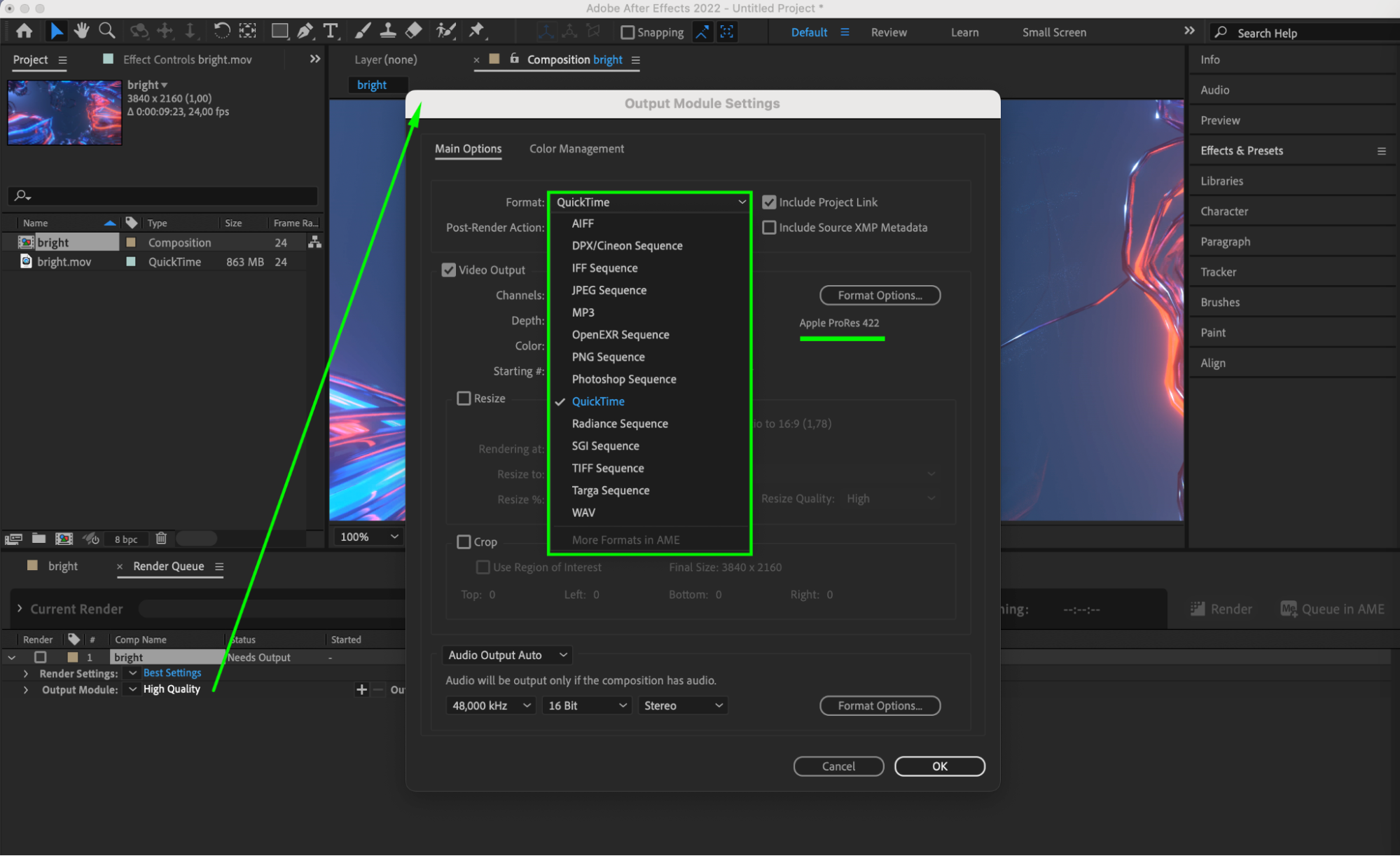 Explore advanced techniques such as color management and alpha channel handling for precise control over your export. For example, enable color management to ensure accurate color reproduction in your videos, especially for projects with specific color requirements.
