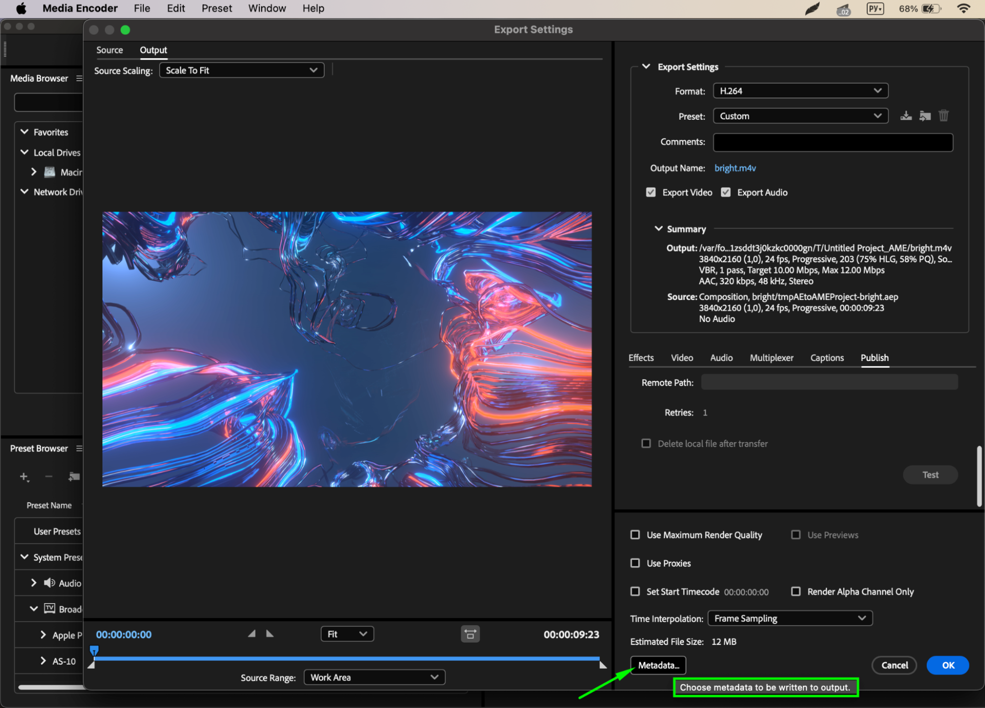 Embed metadata and subtitles to enhance the discoverability and accessibility of your videos. For YouTube, include relevant keywords and tags in the video description to improve search visibility. Use Adobe Media Encoder to input metadata. Once you’ve configured all export settings and entered metadata, click the “Start” button to initiate the export process.