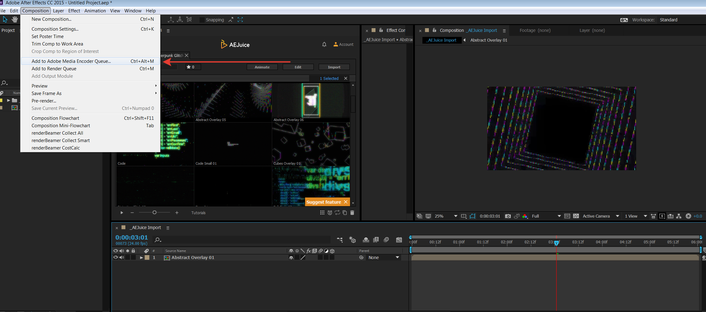- Go to Composition – Add to Adobe Media Encoder Render Queue…