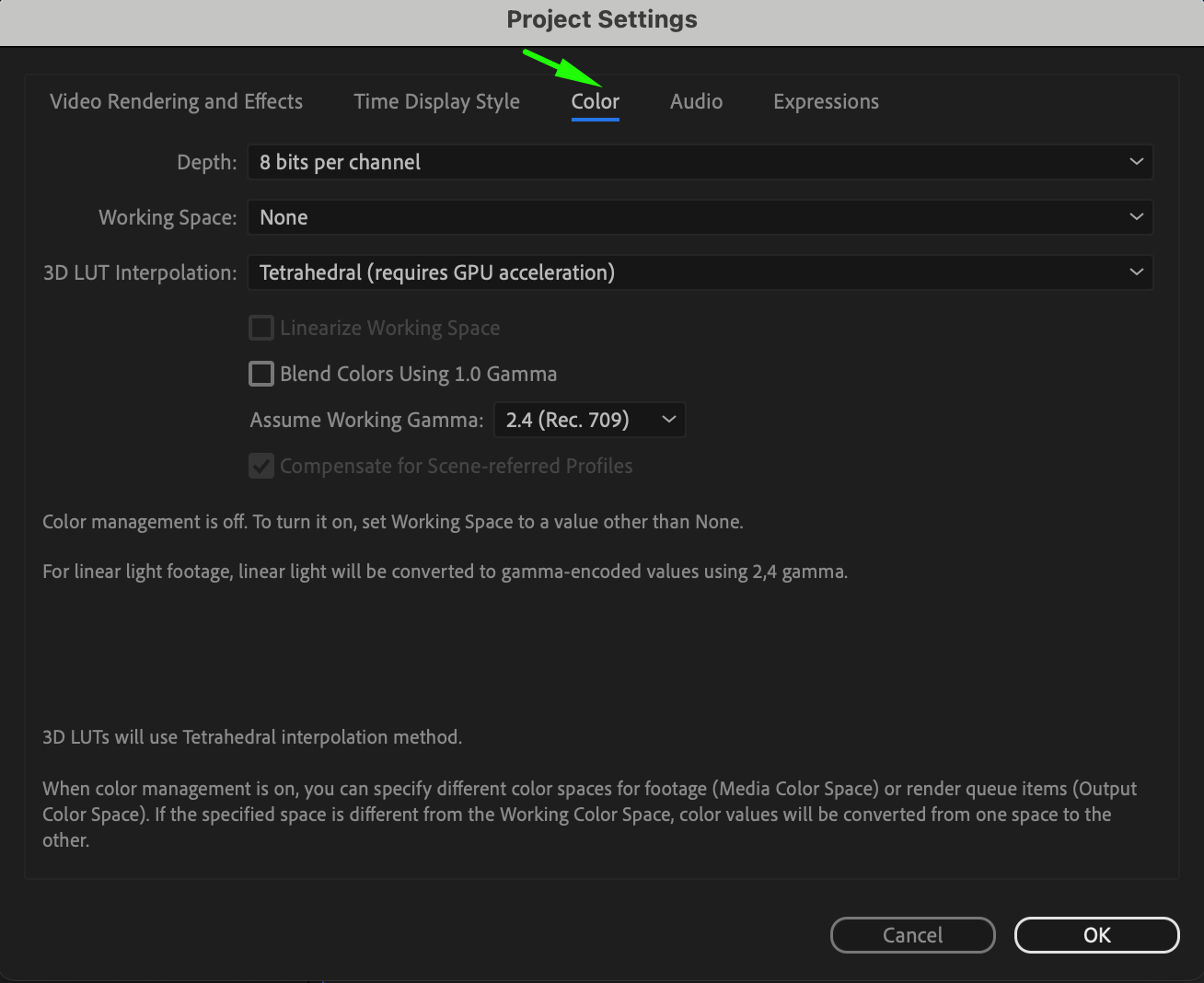 Step 2: Configuring Color Management in Project Settings