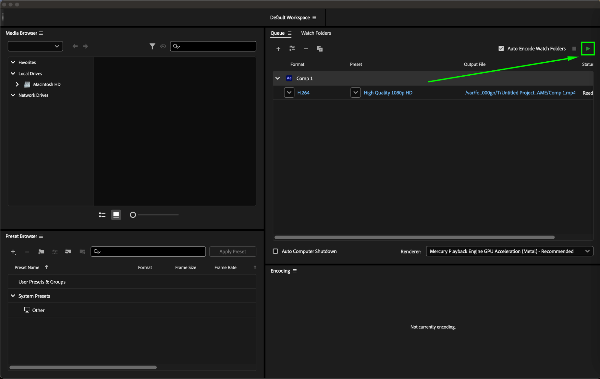 For smaller file sizes, use Media Encoder instead of the Render Queue. Go to Composition > Add to Adobe Media Encoder Queue, select H.264, and choose the “High Quality 1080p HD” preset (or a lower quality preset if needed). This will automatically apply optimal compression settings for reduced file size.