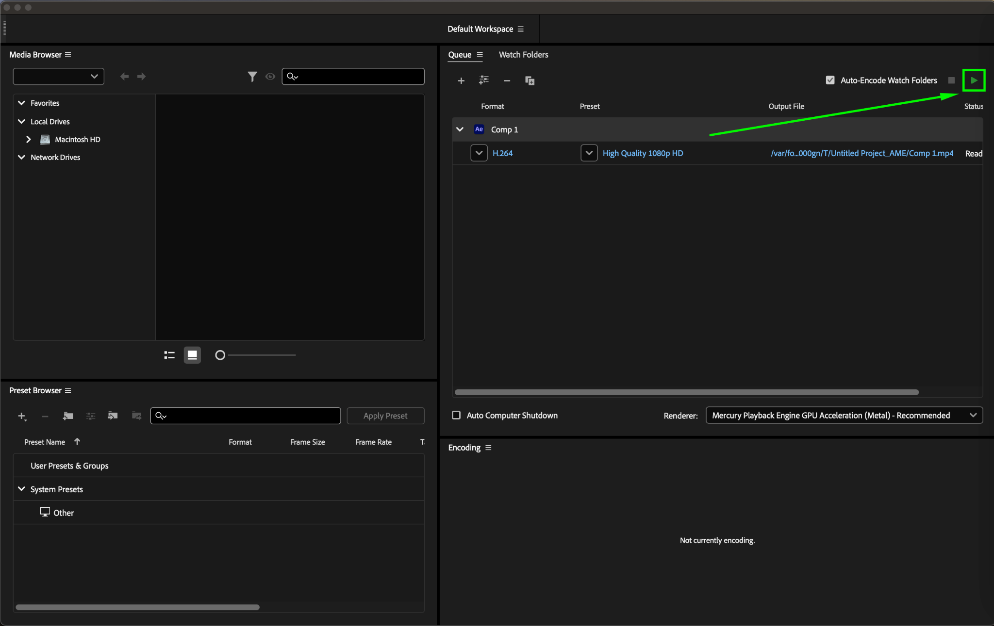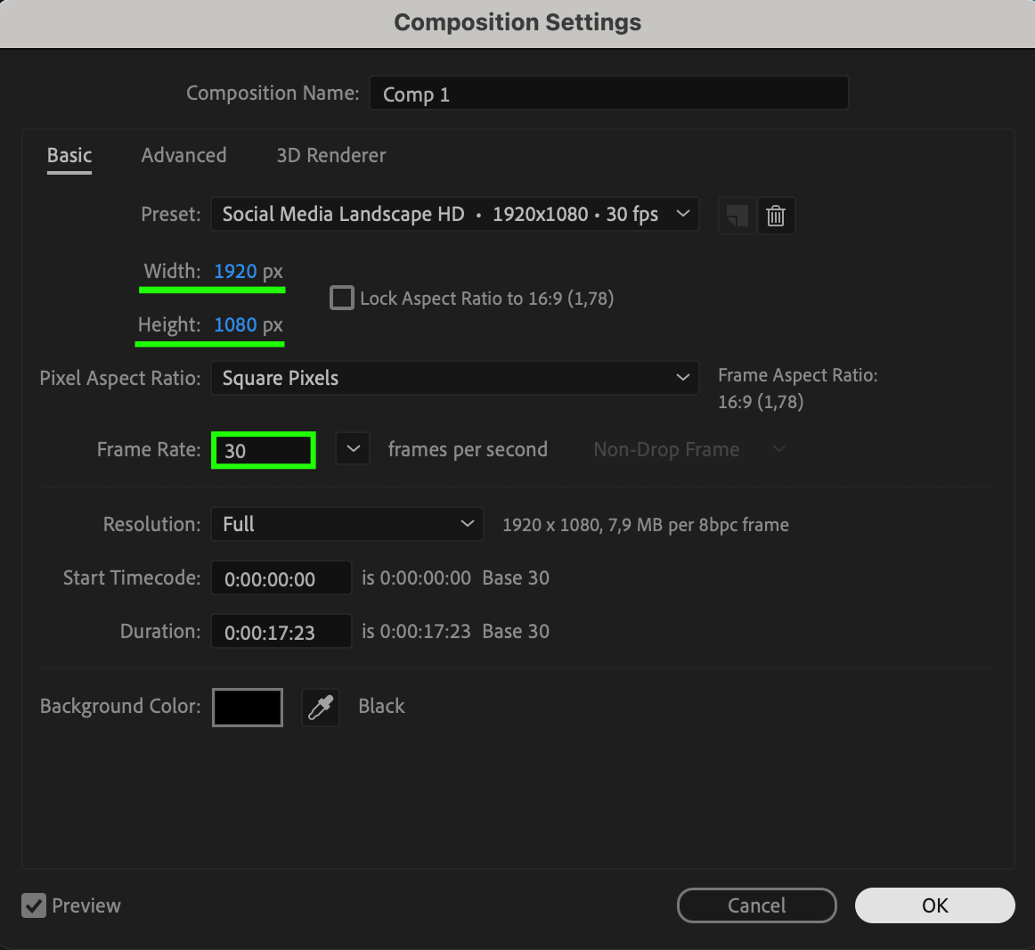 For smaller file sizes, use Media Encoder instead of the Render Queue. Go to Composition > Add to Adobe Media Encoder Queue, select H.264, and choose the “High Quality 1080p HD” preset (or a lower quality preset if needed). This will automatically apply optimal compression settings for reduced file size.