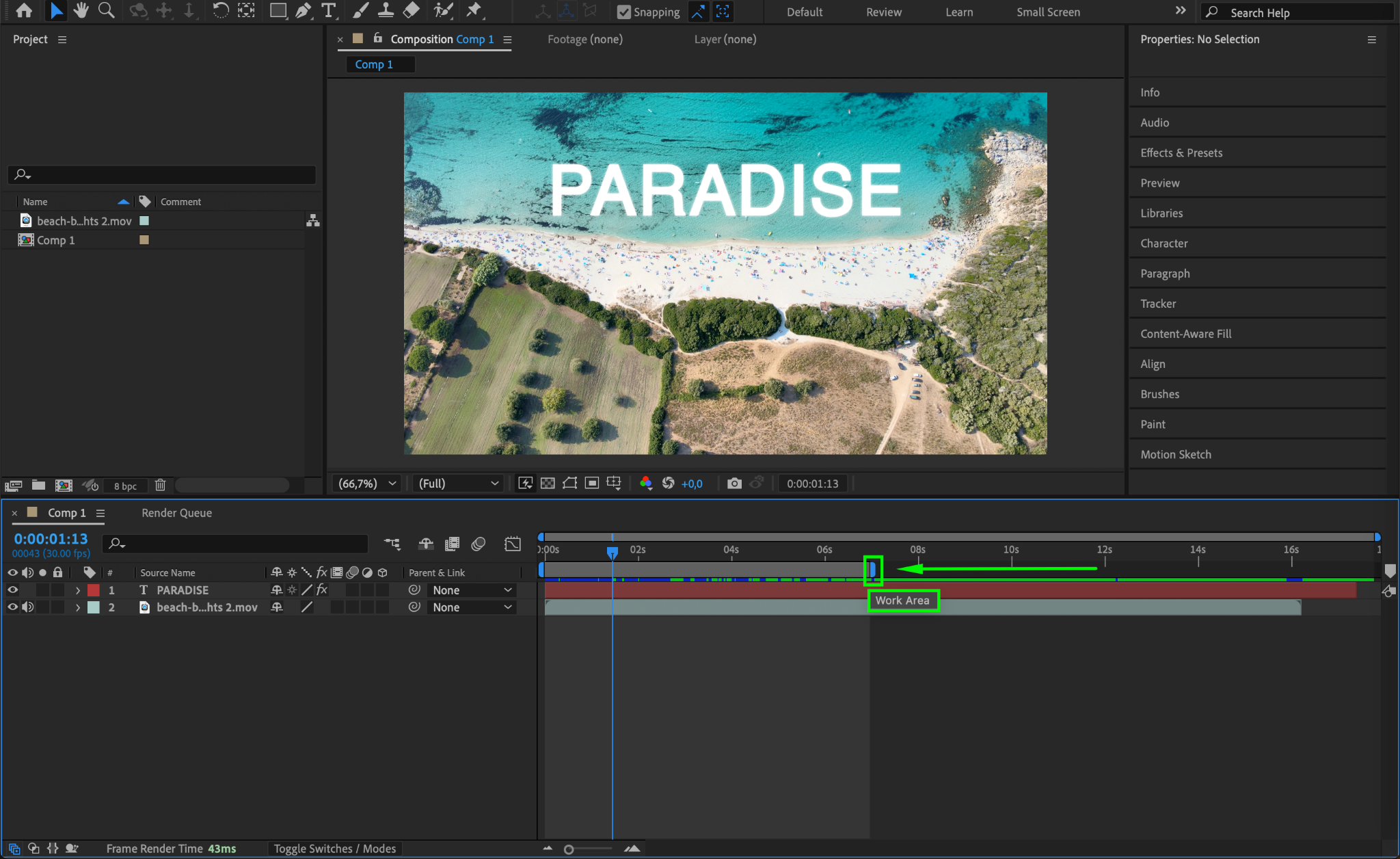 If your composition has extra footage that is not needed, trim it before exporting. Go to the Timeline, set the Work Area, and choose Composition > Trim Comp to Work Area to remove unwanted frames.