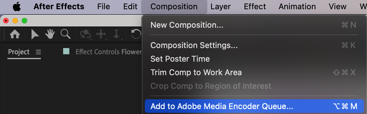 Step 3: Navigate to the “Composition” menu and select “Add to Adobe Media Encoder Queue.”