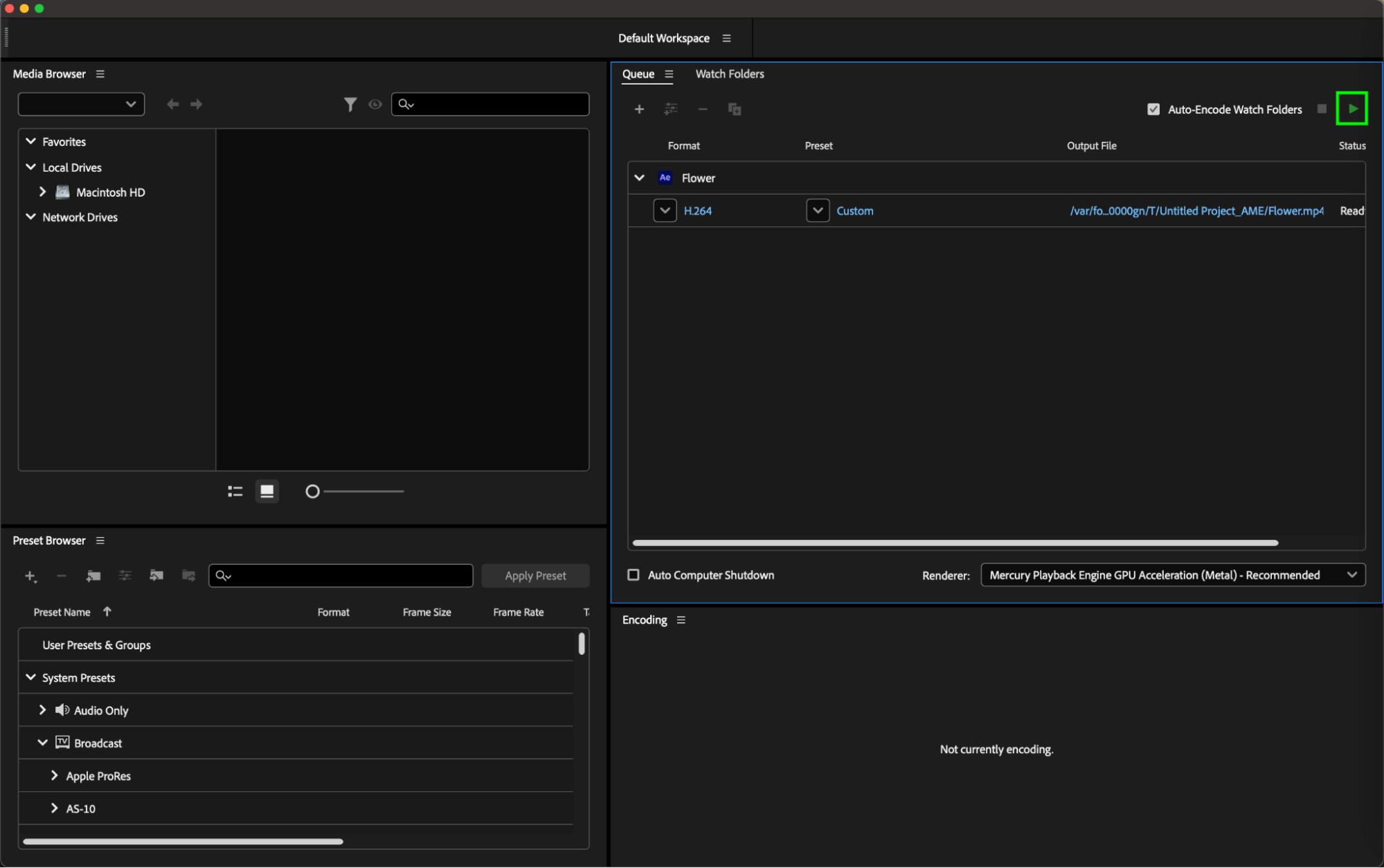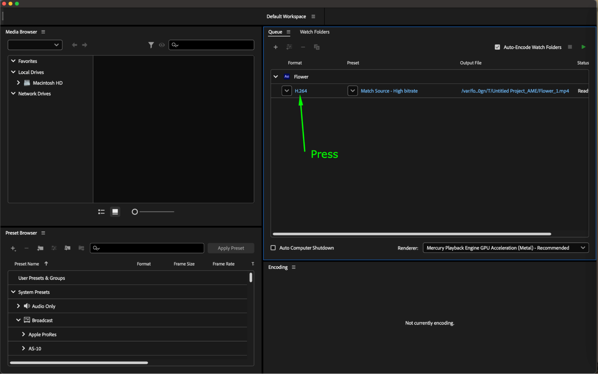 Step 4: In Adobe Media Encoder, choose the “H.264” format for encoding the video into MP4.