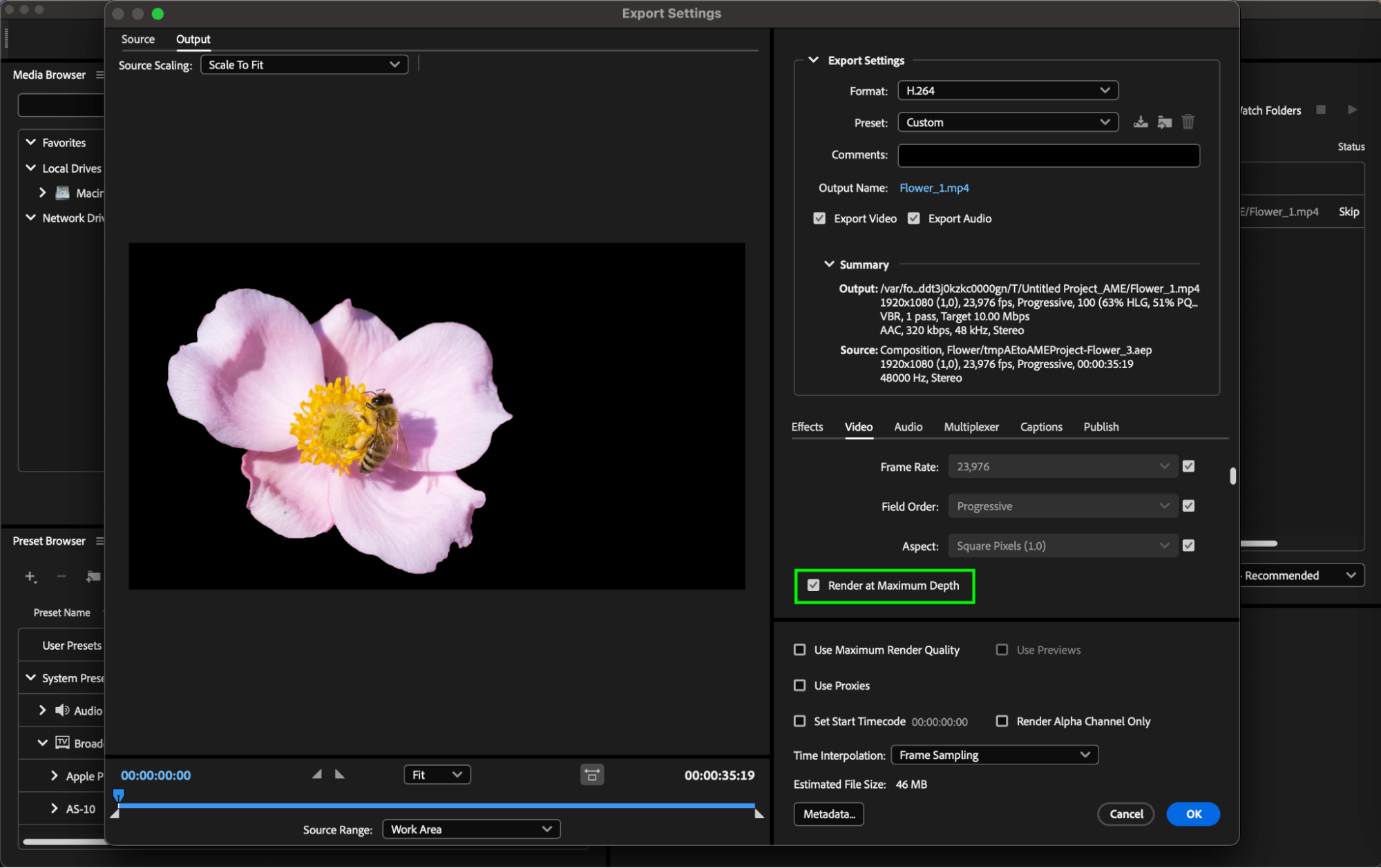 Step 5: In the “Video Settings” section, ensure that the “Render at Maximum Depth” option is enabled.