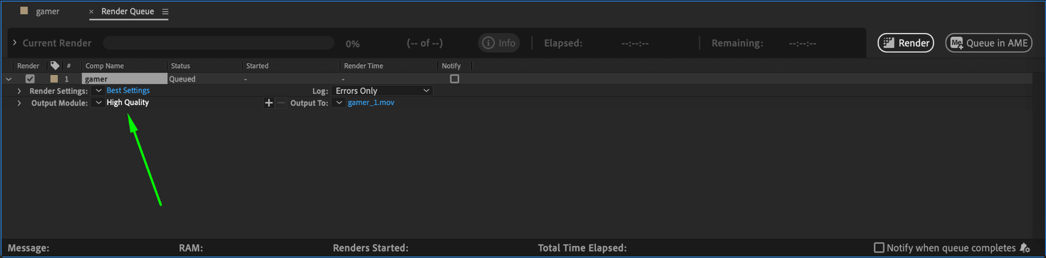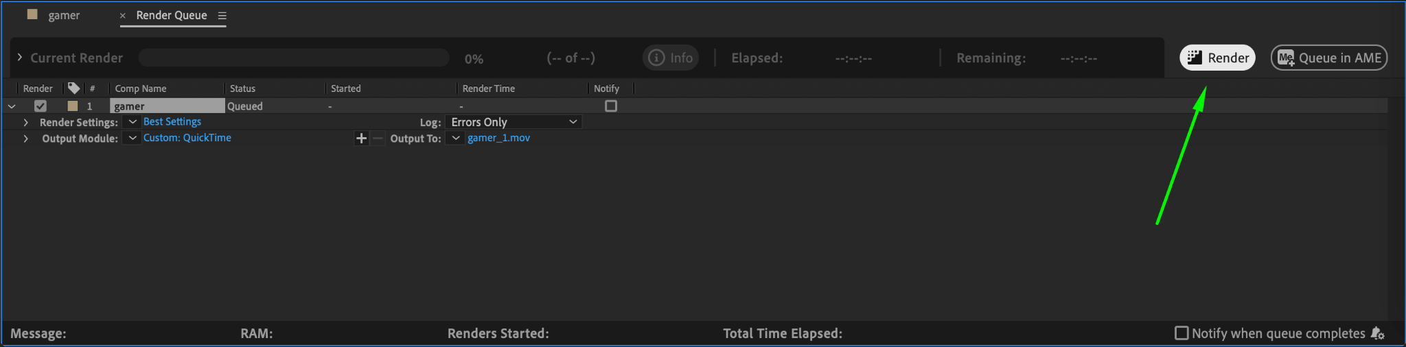 Step 2: Add to Render Queue