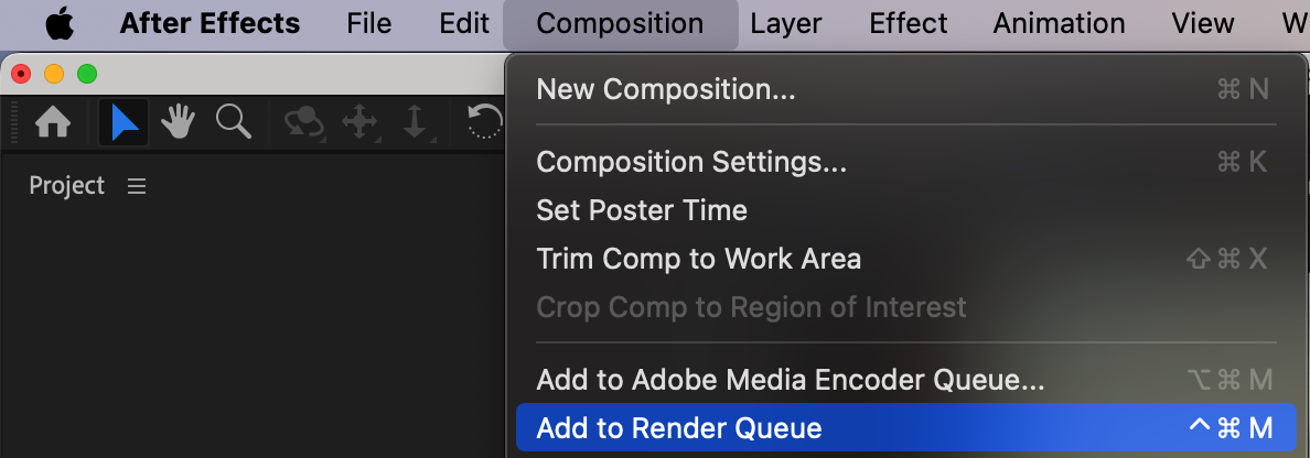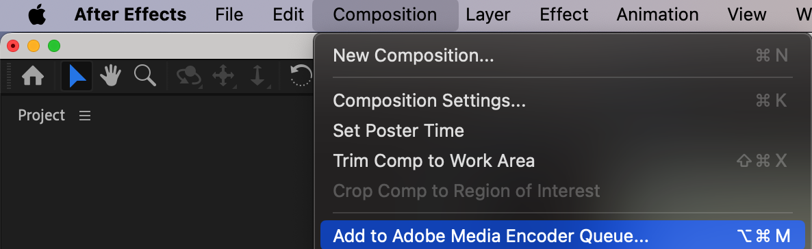 Go to Composition > Add to Adobe Media Encoder. This action opens Adobe Media Encoder and prepares your composition for export.