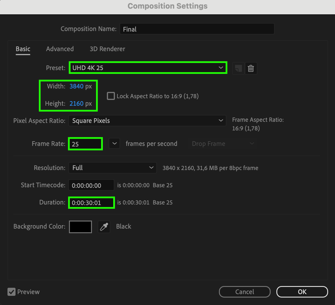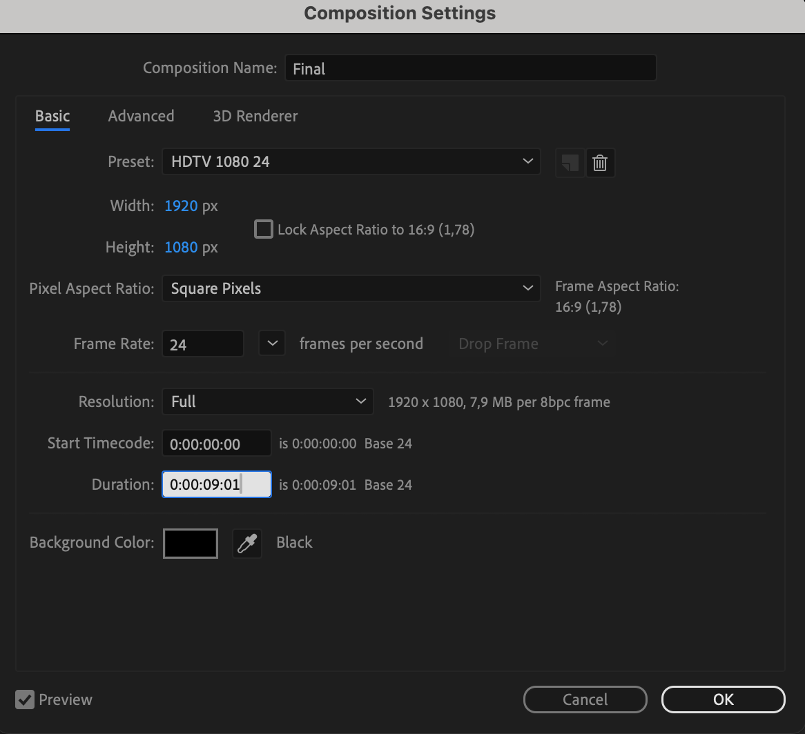 In the “Composition Settings” window, you can modify parameters such as width, height, frame rate, and duration. Enter the new values for width, height, frame rate, and duration in their respective fields. Ensure that you select the appropriate units of measurement (e.g., pixels for width and height, frames per second for frame rate, frames for duration). Once you have adjusted the composition parameters, click “OK” to apply the changes.