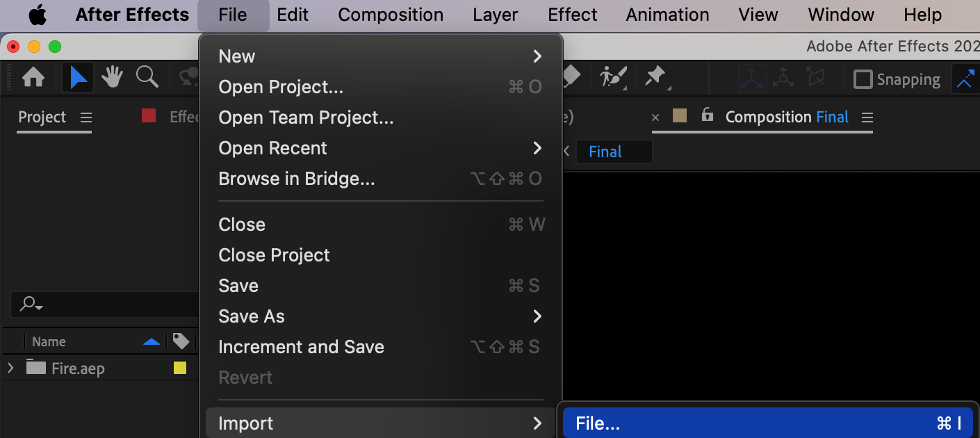 When working with video content, use File > Import > File to add new elements to the extended section of the composition.