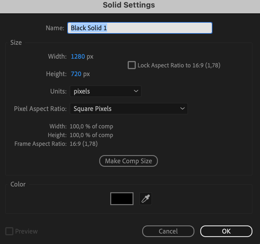 3. Create Black Solid Layer: