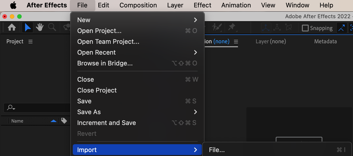 Open After Effects and import the video file you want to fast forward into your project.