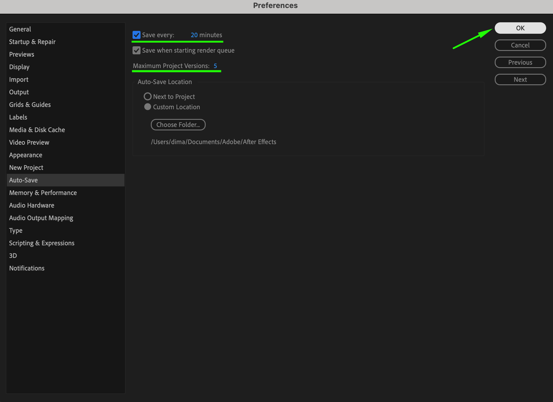 To begin, you’ll need to access the Auto-Save preferences in After Effects. If you’re using Windows, go to the “Edit” menu, then select “Preferences,” and finally click on the “Auto-Save” tab. For Mac users, navigate to “After Effects” in the top menu, then select “Settings” and “Auto-Save.” This window allows you to view and adjust your auto-save settings, making it the starting point for locating your auto-saved files.