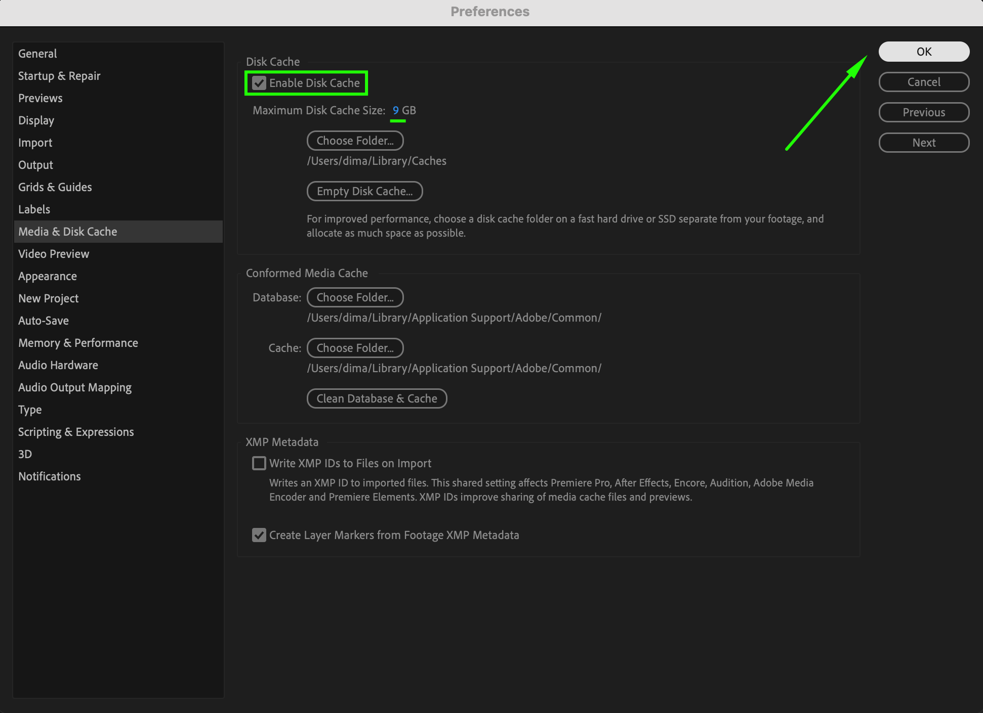After Effects includes a feature called Global Performance Cache that stores previously rendered frames on your hard drive. This allows After Effects to reuse cached data, speeding up future playback. To enable this, go to Edit > Preferences > Media & Disk Cache (or Settings > Media & Disk Cache on Mac), and ensure that Enable Disk Cache is checked. You can also allocate more disk space to the cache for better performance.