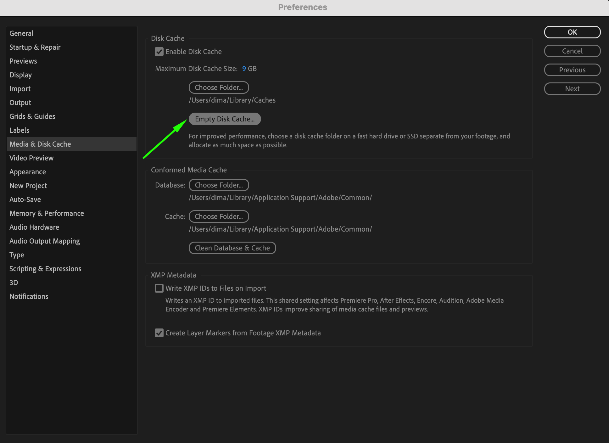 As After Effects generates previews, it stores temporary files in the Disk Cache. Over time, this cache can become cluttered and impact performance. To clear the disk cache, go to Edit > Preferences > Media & Disk Cache and click on Empty Disk Cache. This will free up space on your hard drive and remove unnecessary files, helping to improve playback speed.