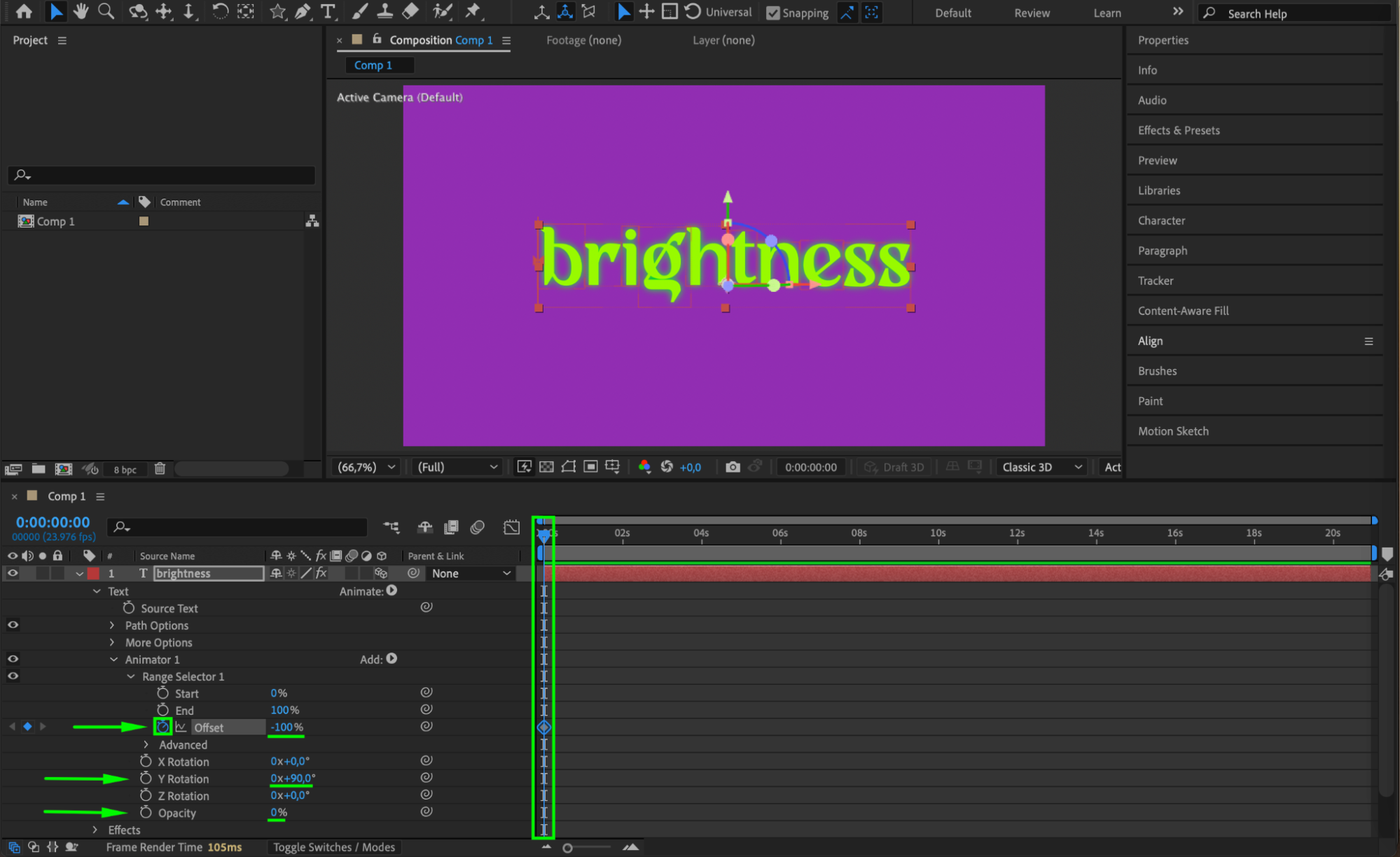 Set Offset to -100%, then click on the Stopwatch icon to add a keyframe.