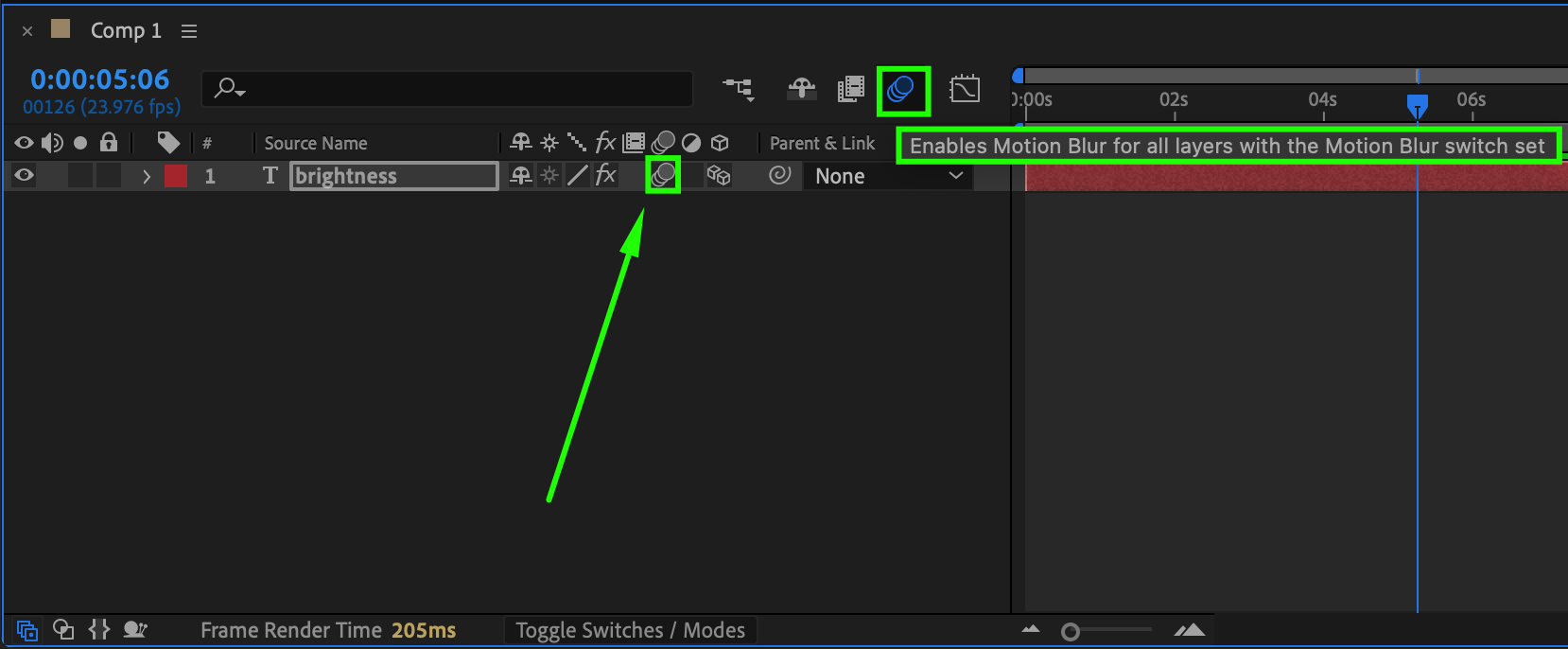 To make the flip effect look more natural, enable Motion Blur for the text layer by clicking the Motion Blur icon in the Timeline panel.