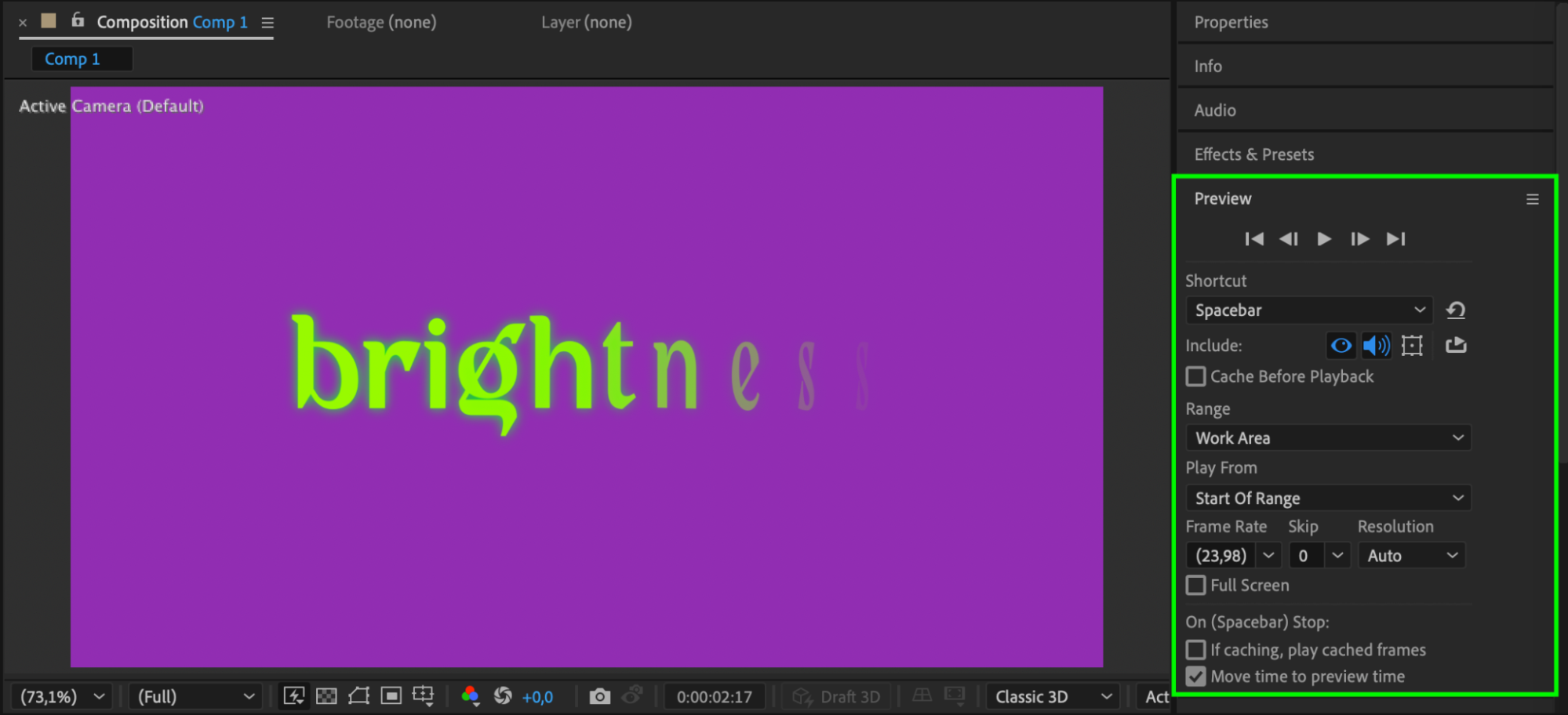 Press Spacebar to preview the animation and check if the text flip effect looks smooth. Adjust keyframes if needed.