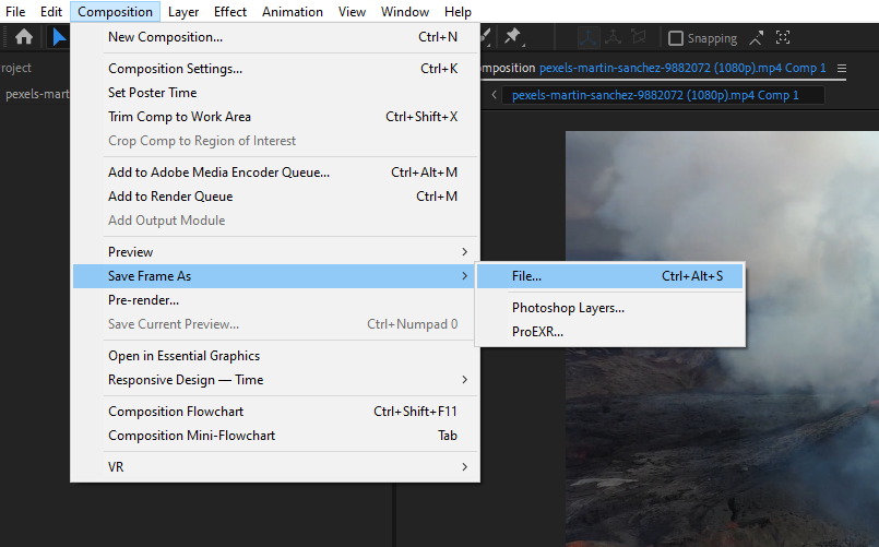 To do this, move the CTI to the desired frame and navigate to “Composition” > “Save Frame As” > “File.” Choose a file format and save the frame as an image or video. Then, import the saved file back into After Effects and use it as a freeze-frame layer.