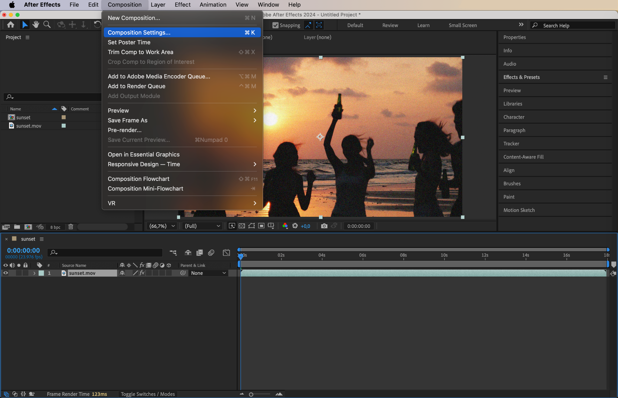 Step 2: Open Composition Settings