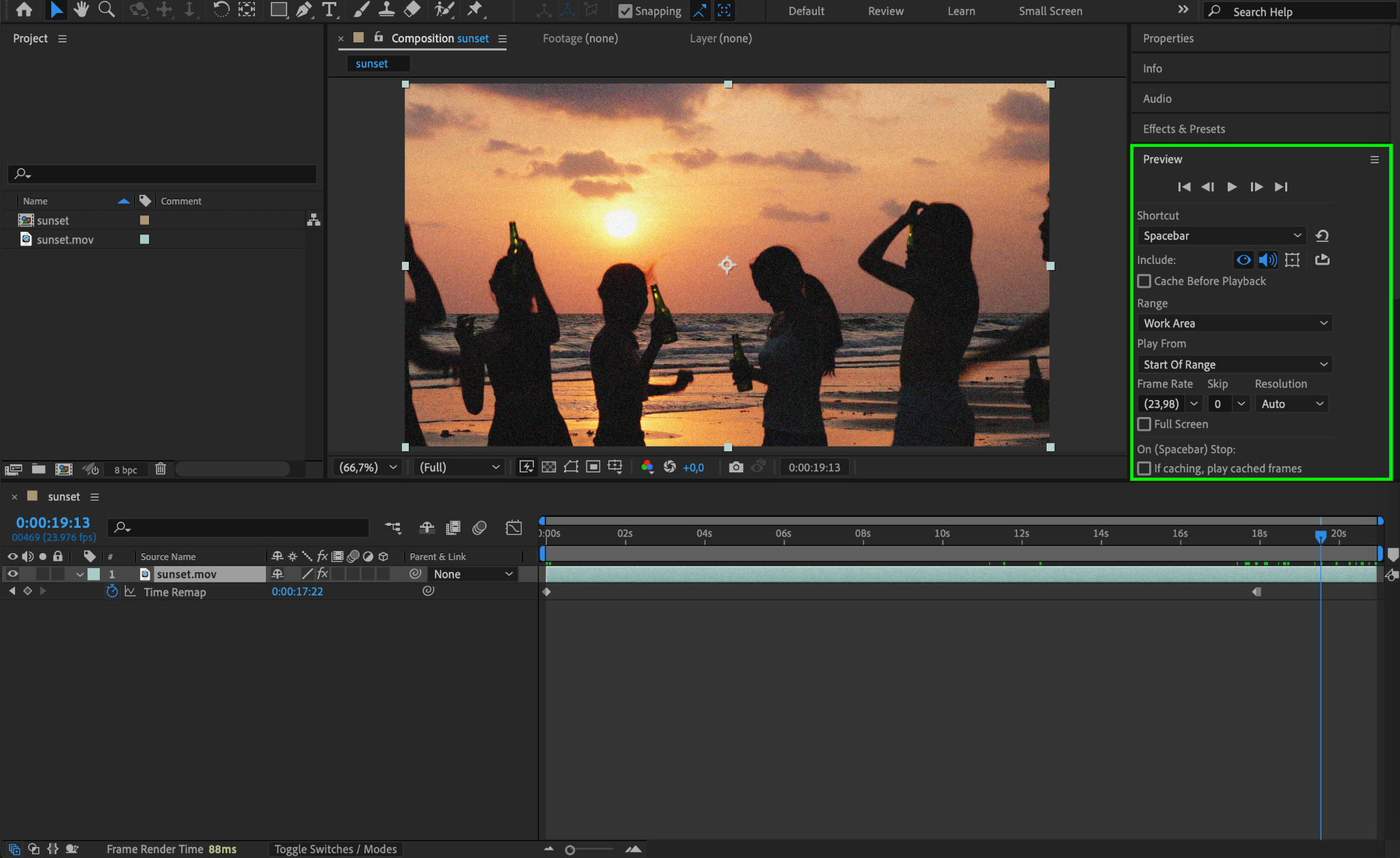 Press Spacebar to preview your composition and make sure the freeze effect looks smooth.