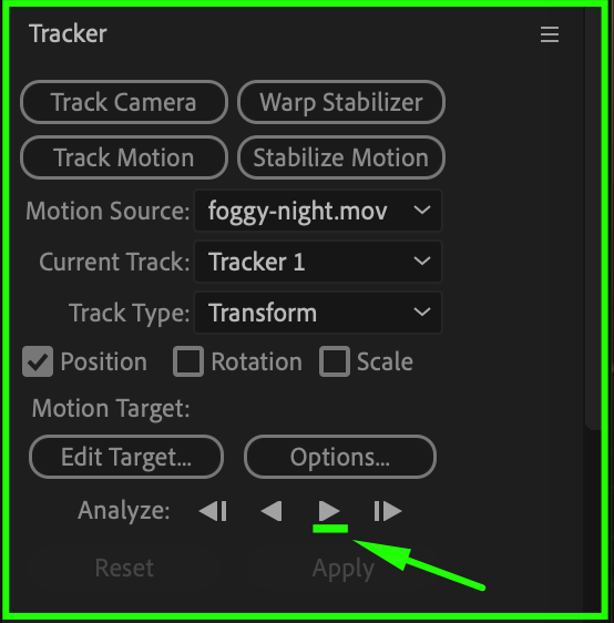 In the layer viewer, adjust the Track Point. Position the inner box on a high-contrast area (like a sharp edge or corner) and the outer box around it for the search area. The more unique and consistent the area, the better the tracking.