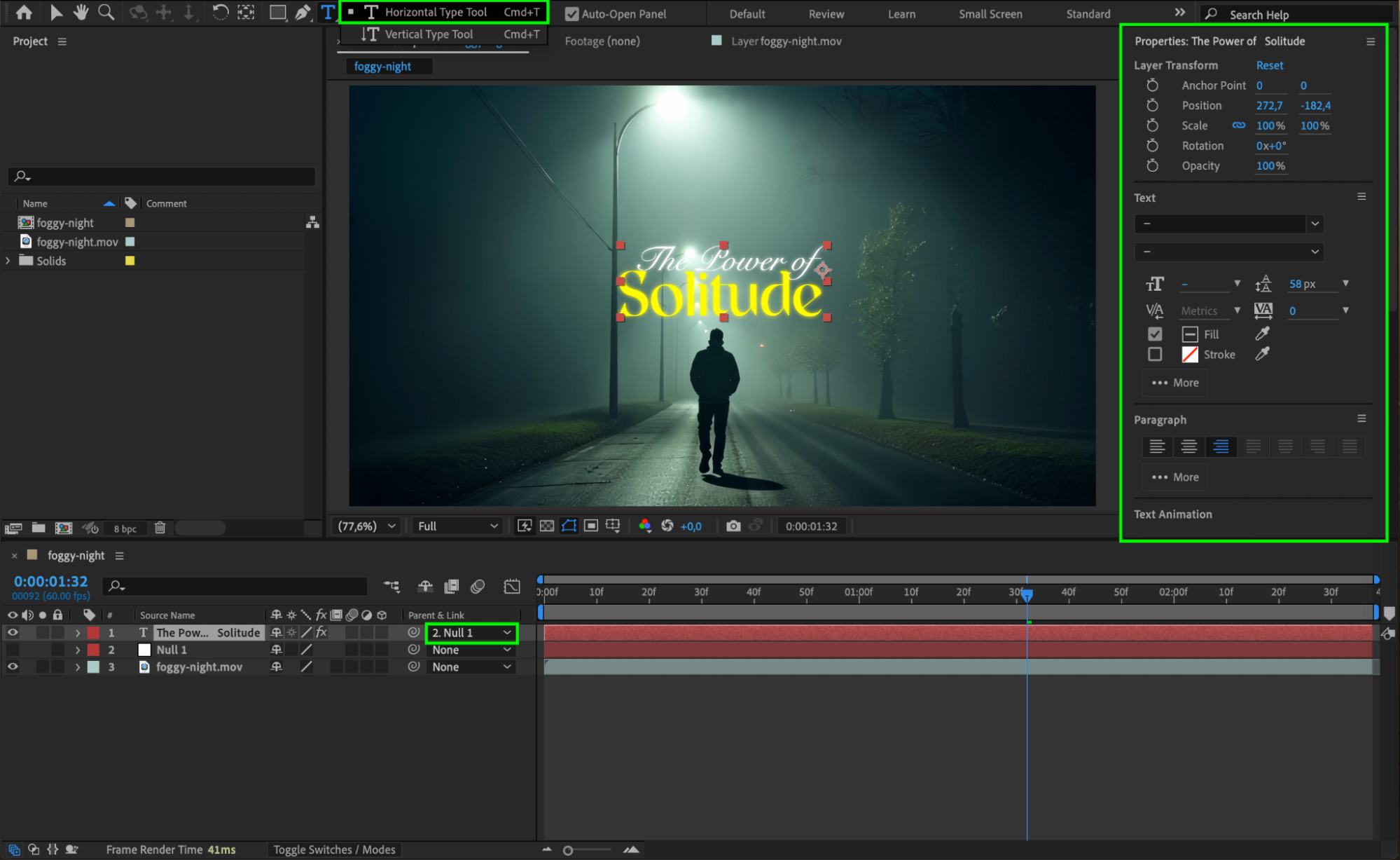 Parent any graphic or text layer to the Null Object using the pick whip. These elements will now follow the tracked movement. This method keeps your visual elements locked to the motion of the footage.