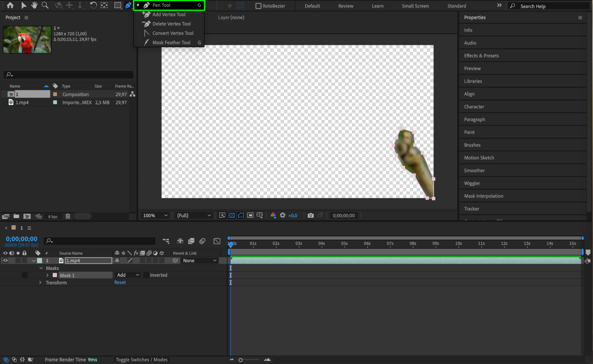 Before you can use Content Aware Fill, you need to isolate the area you want to remove. To do this, select the layer on the timeline that contains your footage. Then, choose the Pen Tool (G) from the toolbar and draw a mask around the object or area you want to remove. This mask defines the region that Content Aware Fill will analyze and remove from your footage.