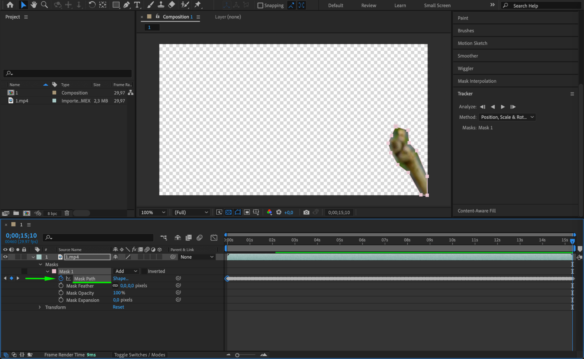 Once the tracking process is complete, you’ll notice that keyframes have been automatically created for the “Mask Path” parameter. These keyframes correspond to each frame where the mask was tracked, allowing for a precise and consistent removal of the object. Review the keyframes and make any necessary adjustments to ensure the mask accurately follows the object throughout the clip.