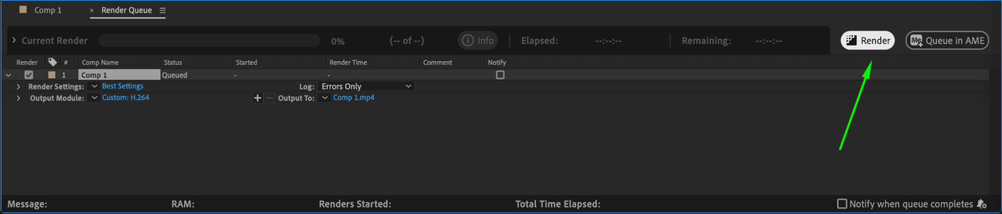 With all settings configured and the output path selected, you’re now ready to render your composition. Simply click on the Render button in the Render Queue panel. After Effects will begin processing your composition and exporting it as an MP4 file. Depending on the complexity of your project and the settings chosen, this process can take a few minutes.