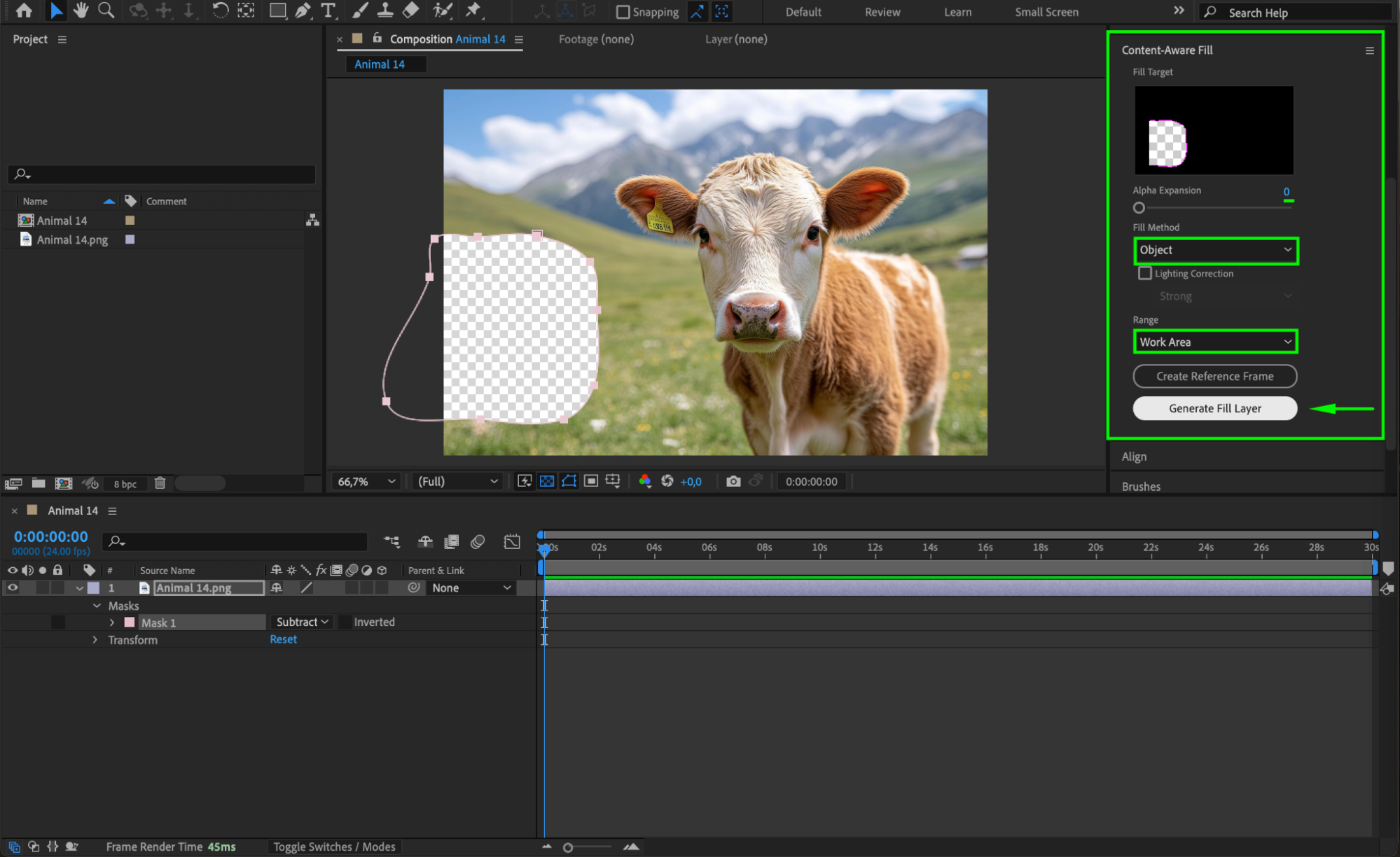 Click Generate Fill Layer to let After Effects process the fill removal.