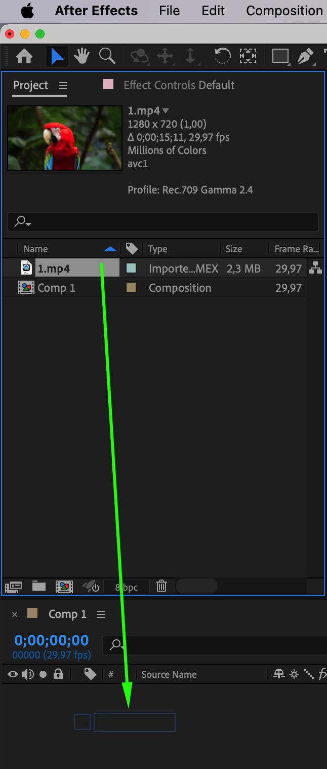Launch After Effects and import your file by selecting “File” > “Import” > “File”.