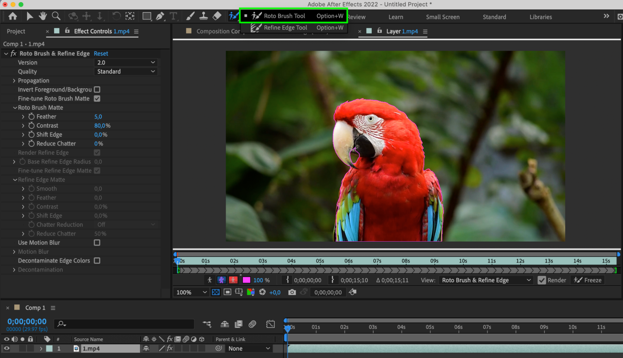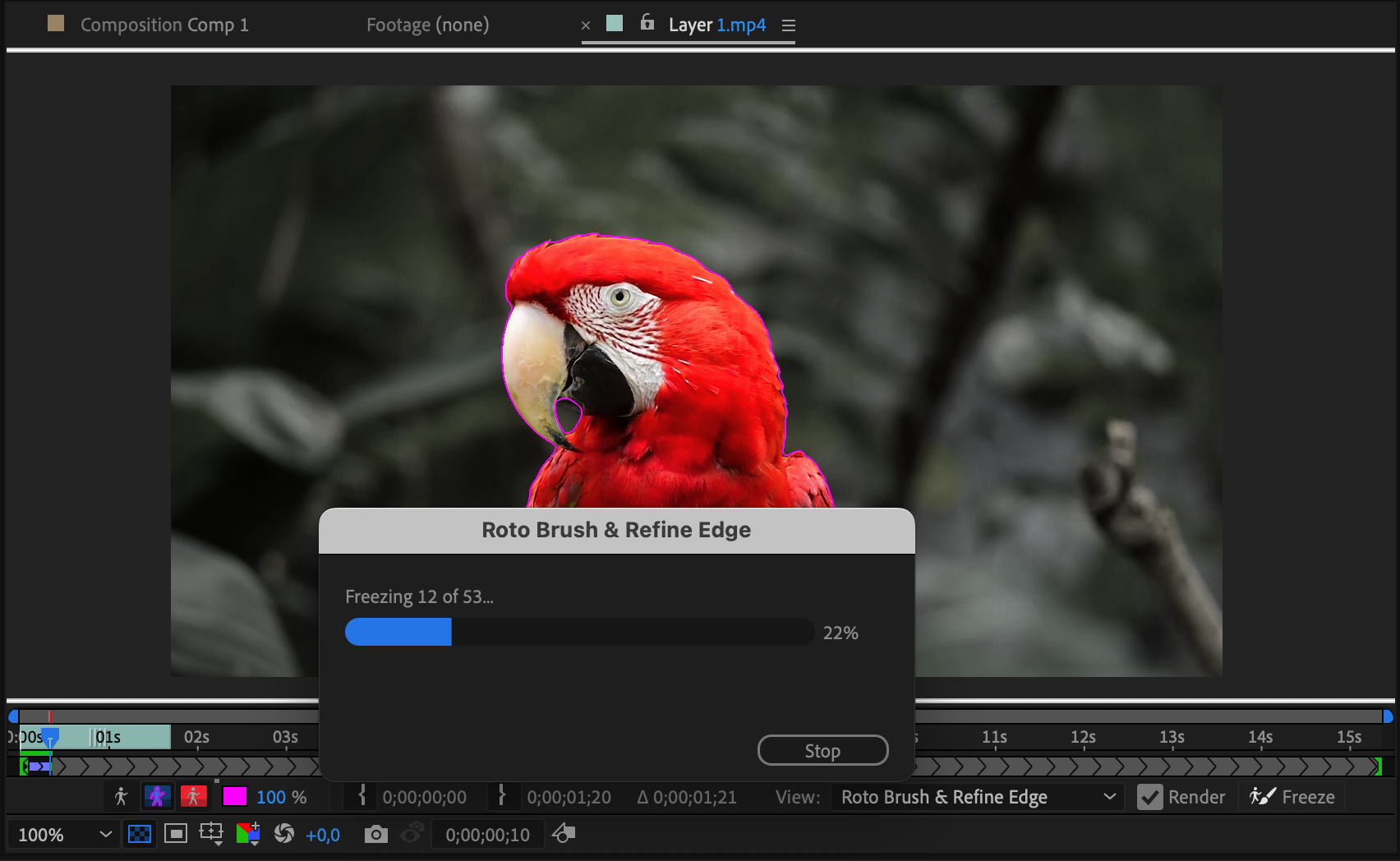 If your image or video has a background that needs to be made transparent, use masking tools such as the “Pen Tool” or “Roto Brush Tool” to select and remove the background.