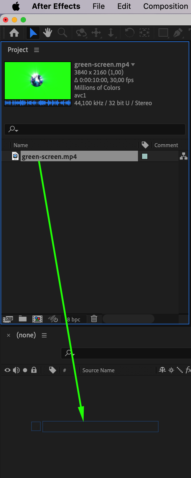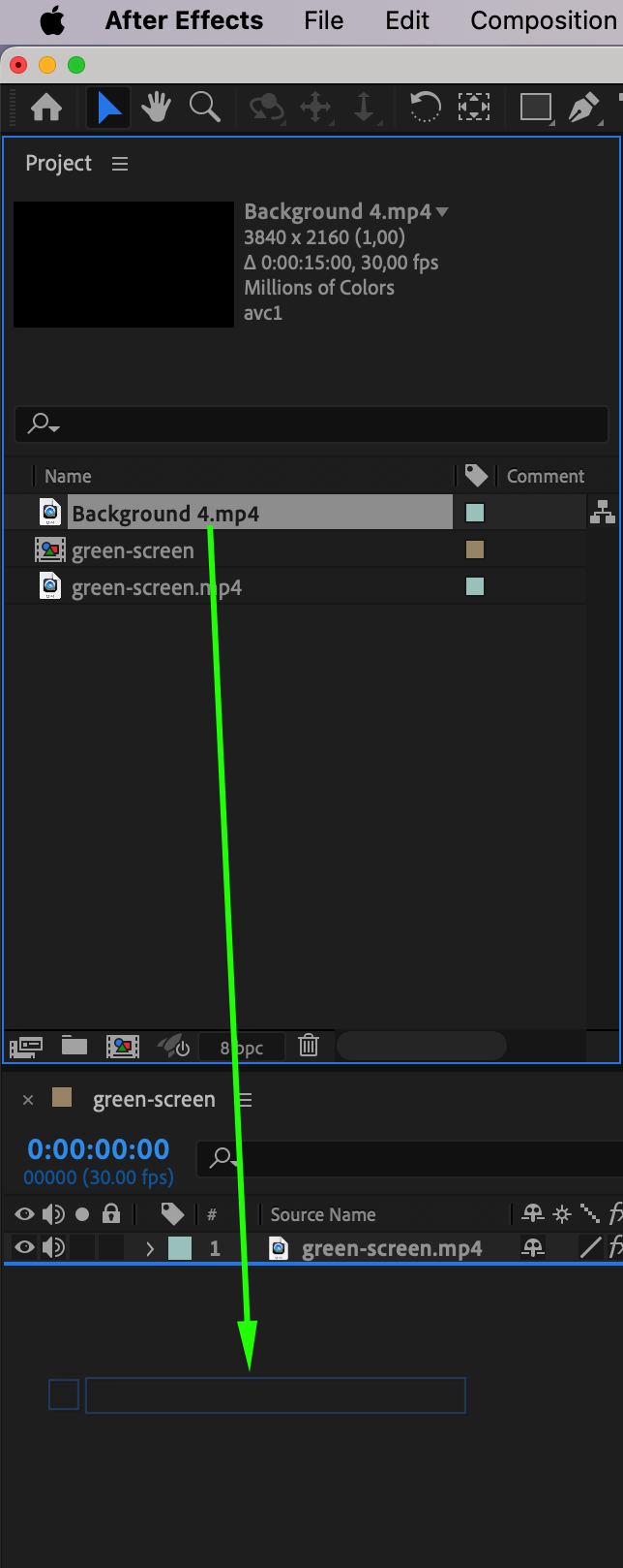 Begin by importing the green screen footage into After Effects. Navigate to File > Import > File, select your video file, and click “Open.” Drag the imported footage from the Project panel to the timeline to create a composition. This sets up your workspace for editing.