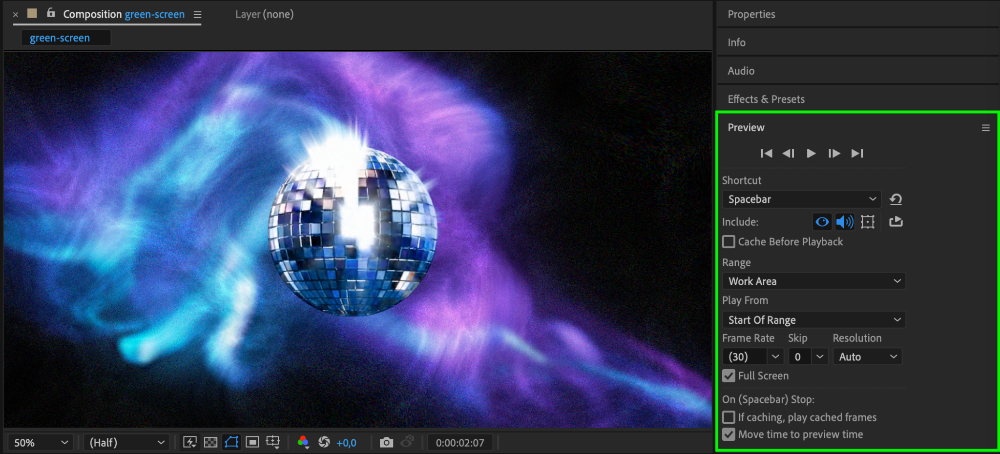 Press the Spacebar to preview your work. Look for any areas that need further refinement, such as edges or color matching. Make necessary adjustments to the keying, mask, or background to ensure a flawless result.