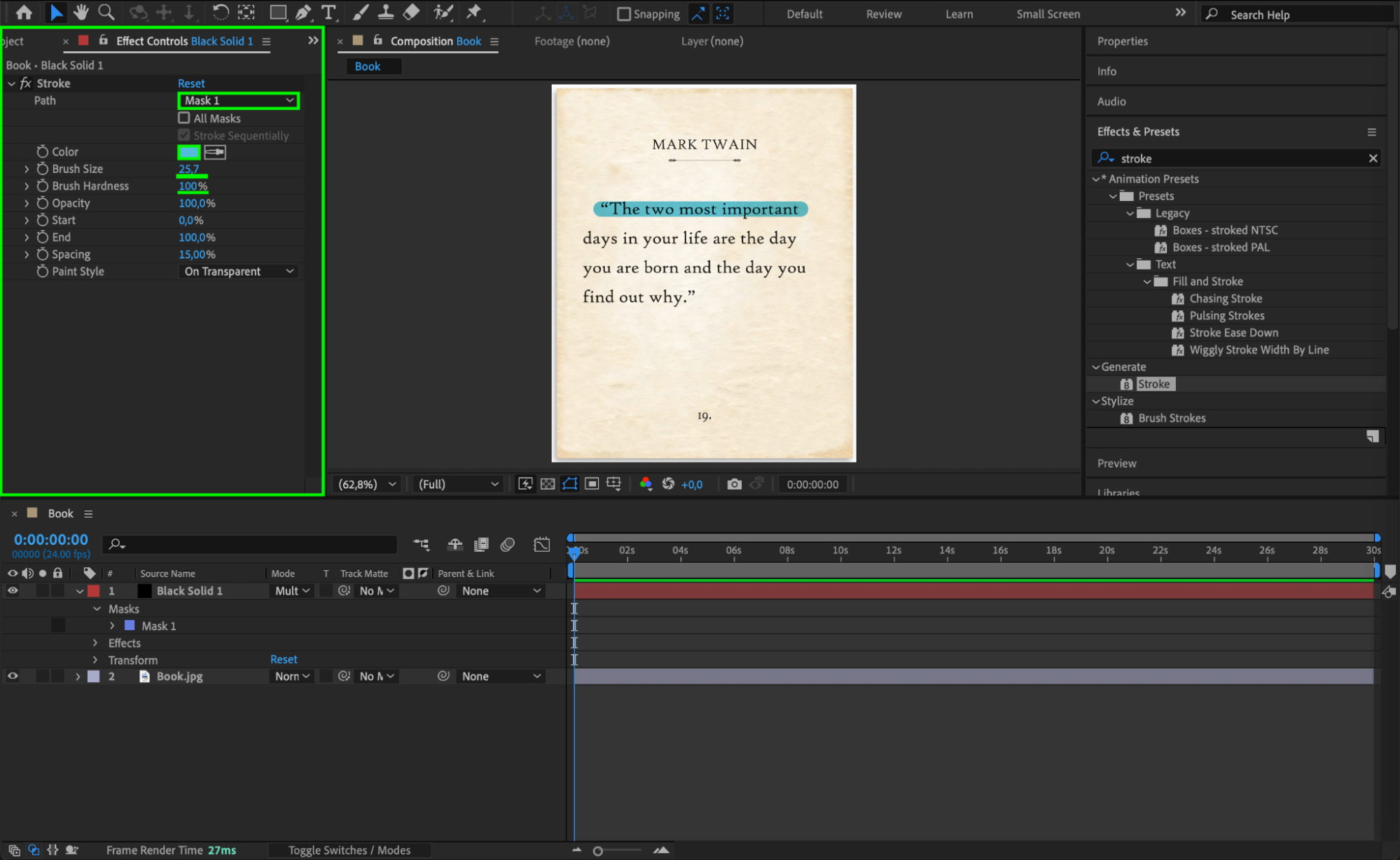 Highlighting text in After Effects is a great way to emphasize key words or phrases in a video. This technique is commonly used in explainer videos, presentations, and social media content. In this guide, we’ll walk you through the steps to create a smooth text highlight animation using a solid layer and the Stroke effect.