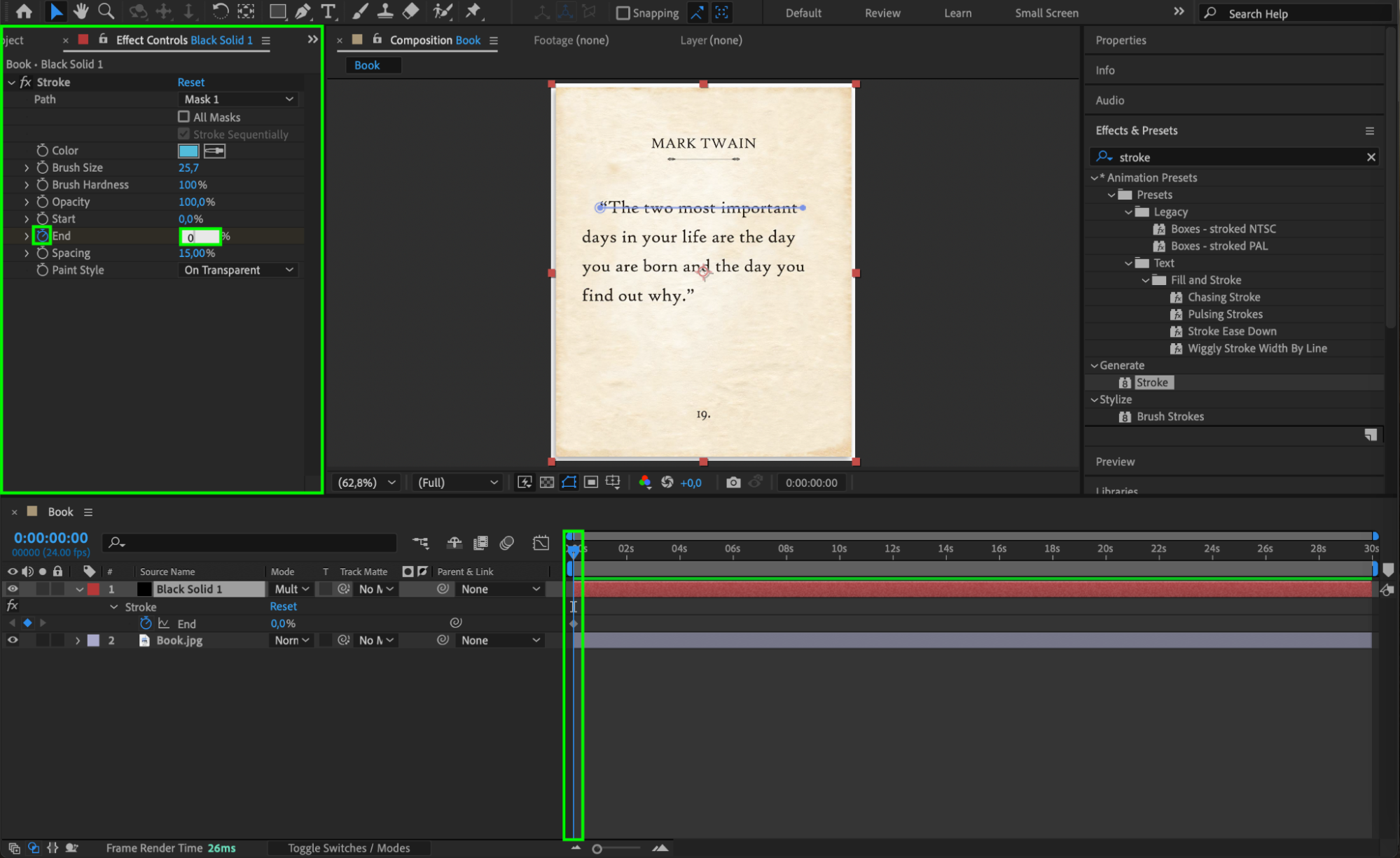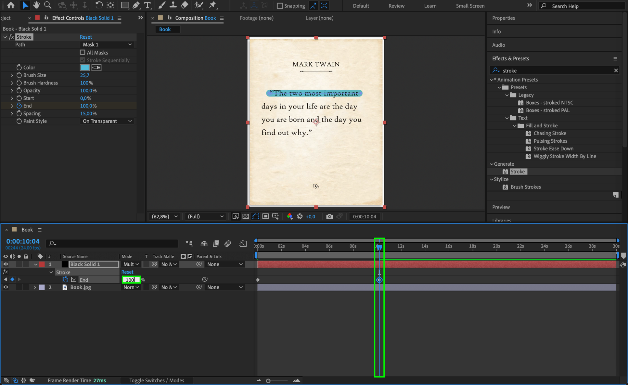 Press Spacebar to preview the highlight effect and make any necessary adjustments to timing or stroke settings.