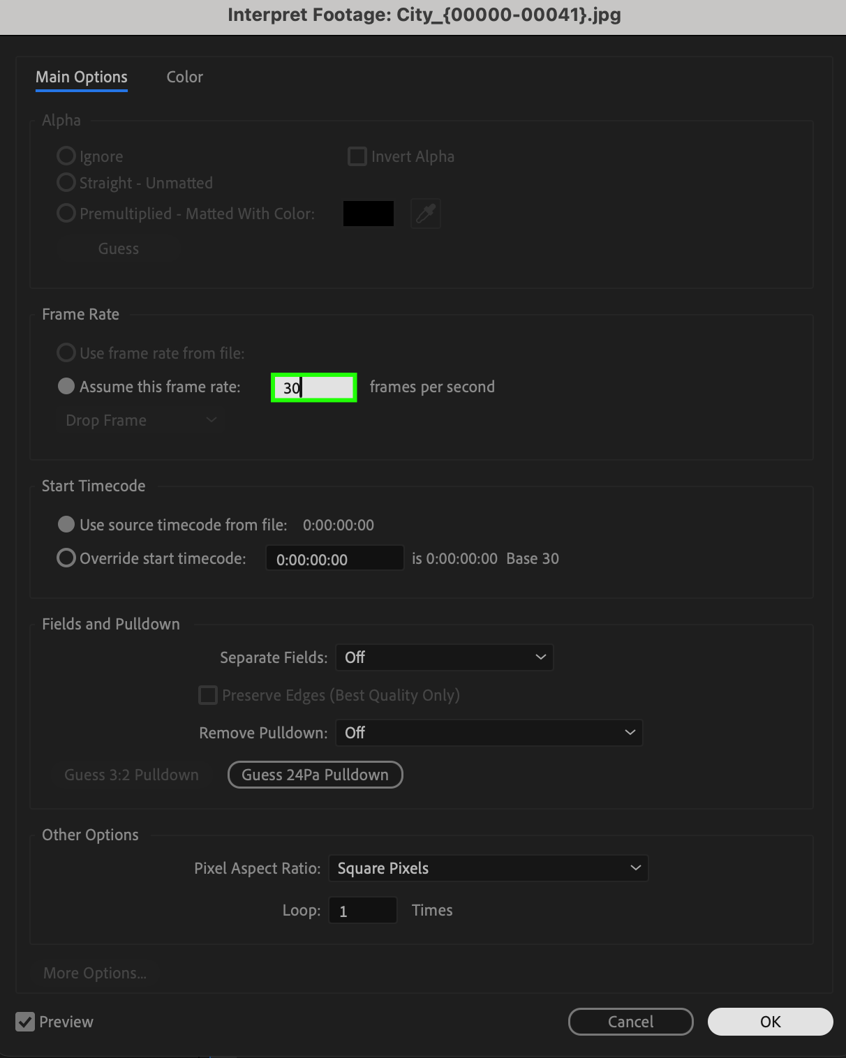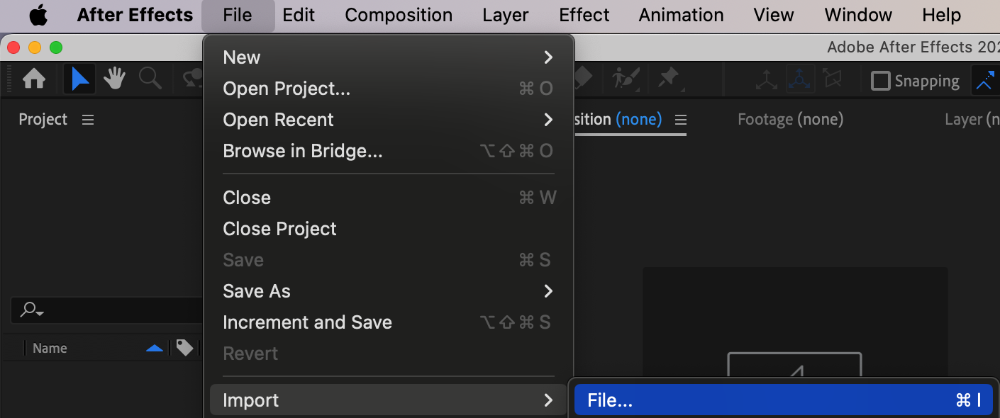 Go to File > Import > File or press “Ctrl/Cmd + I” to open the import window. This will allow you to locate your image sequence on your computer.