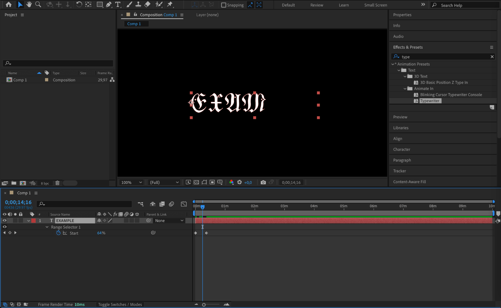 Now that your font is installed, launch Adobe After Effects and create a new composition. To do this, go to Composition > New Composition. Set up your composition according to your project requirements, including the resolution, duration, and frame rate. This composition will serve as the canvas where you’ll apply your new font.