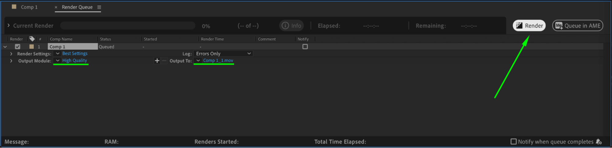 When you’re satisfied with the look and animation of your text, it’s time to render the final composition. Go to Composition > Add to Render Queue to prepare your project for export. In the Render Queue panel, adjust the output settings, choose the desired format, and click Render to export your composition. Your text, now featuring the custom font, will be part of the final video file.