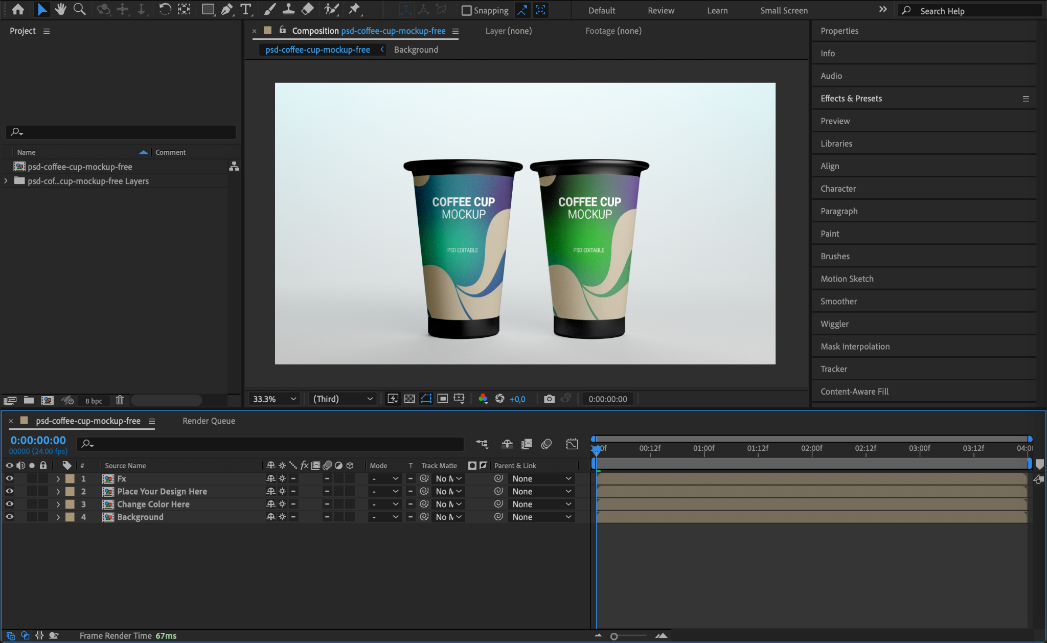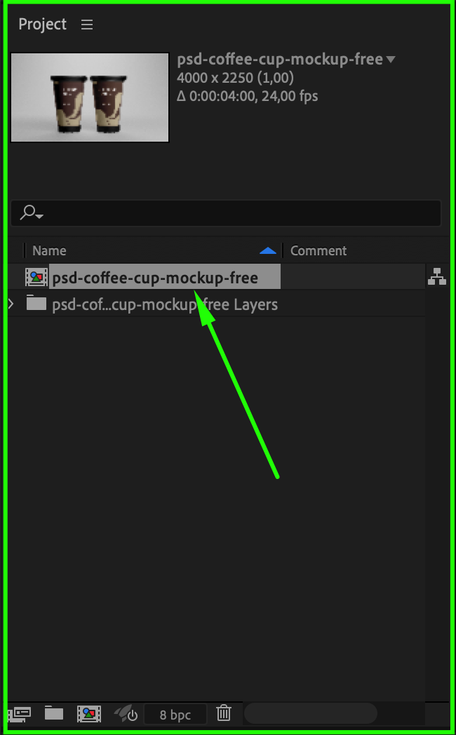 Once imported, your Photoshop file will appear in the Project Panel as a composition. Double-click the composition to open it. Inside the timeline, you’ll find all your Photoshop layers listed and ready to be animated or edited. This is where you can begin creating motion graphics from your static design.
