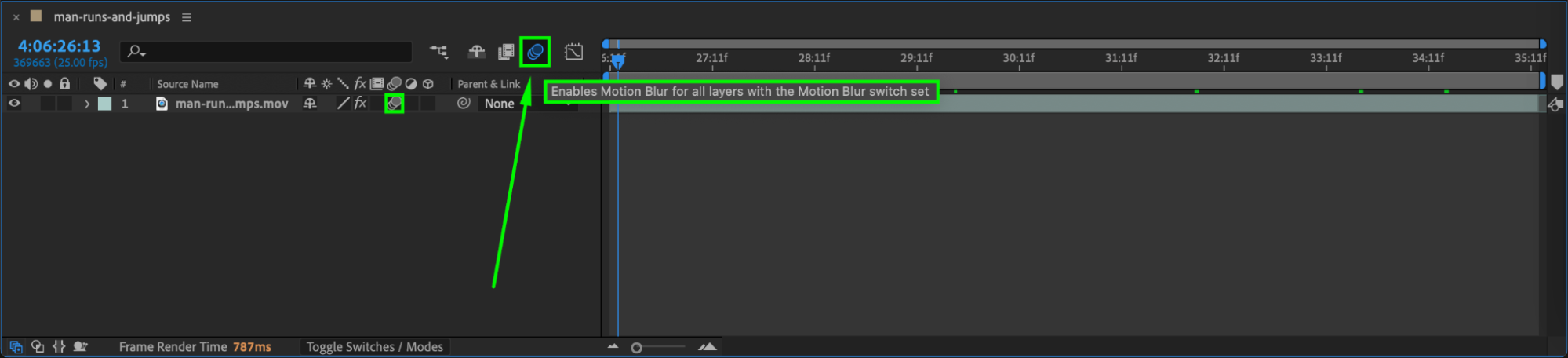 Once tracking is done, enable Motion Blur by checking the Motion Blur box on the layer and turning it on in the timeline. This helps the movement appear more natural, especially for fast-moving subjects.