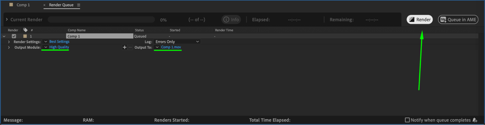 Once satisfied, go to Composition > Add to Render Queue or Add to Adobe Media Encoder Queue to export your final animation with glyphs included.